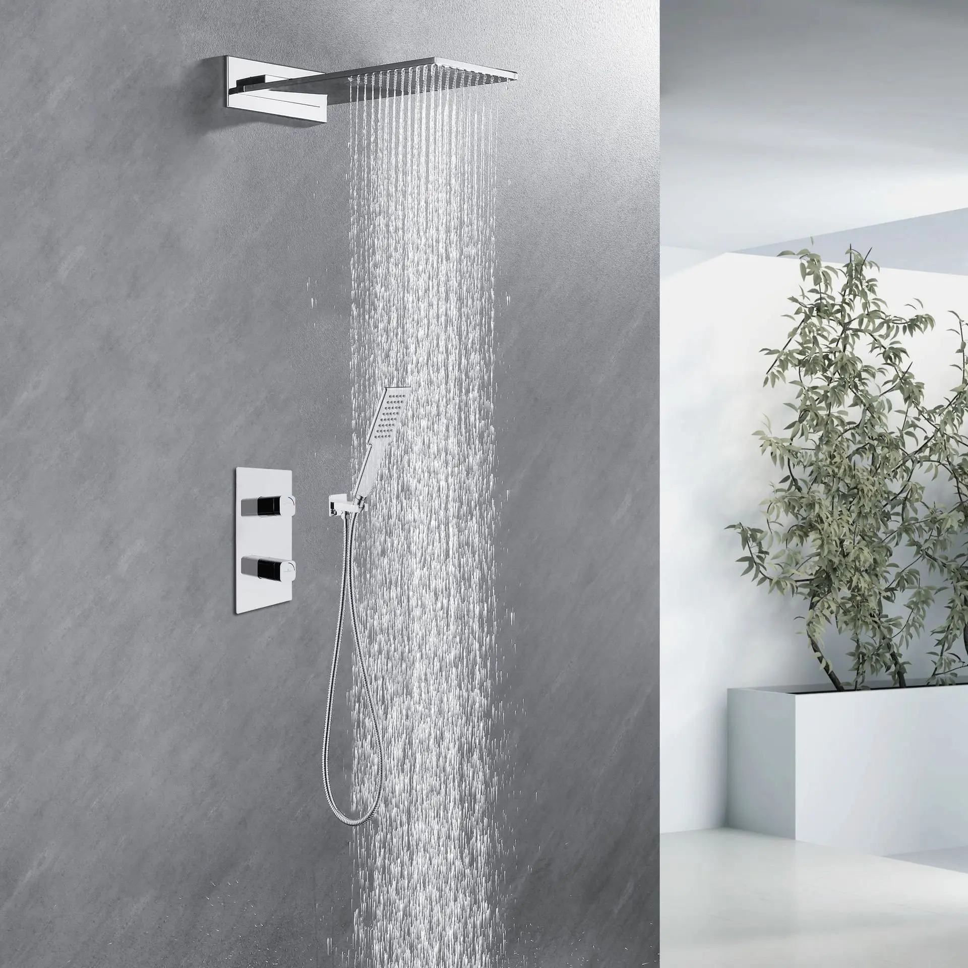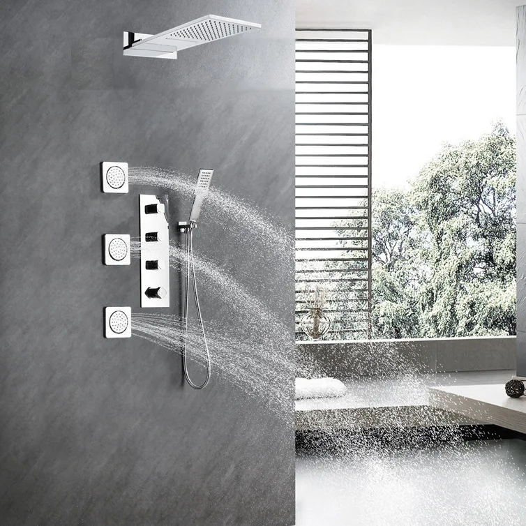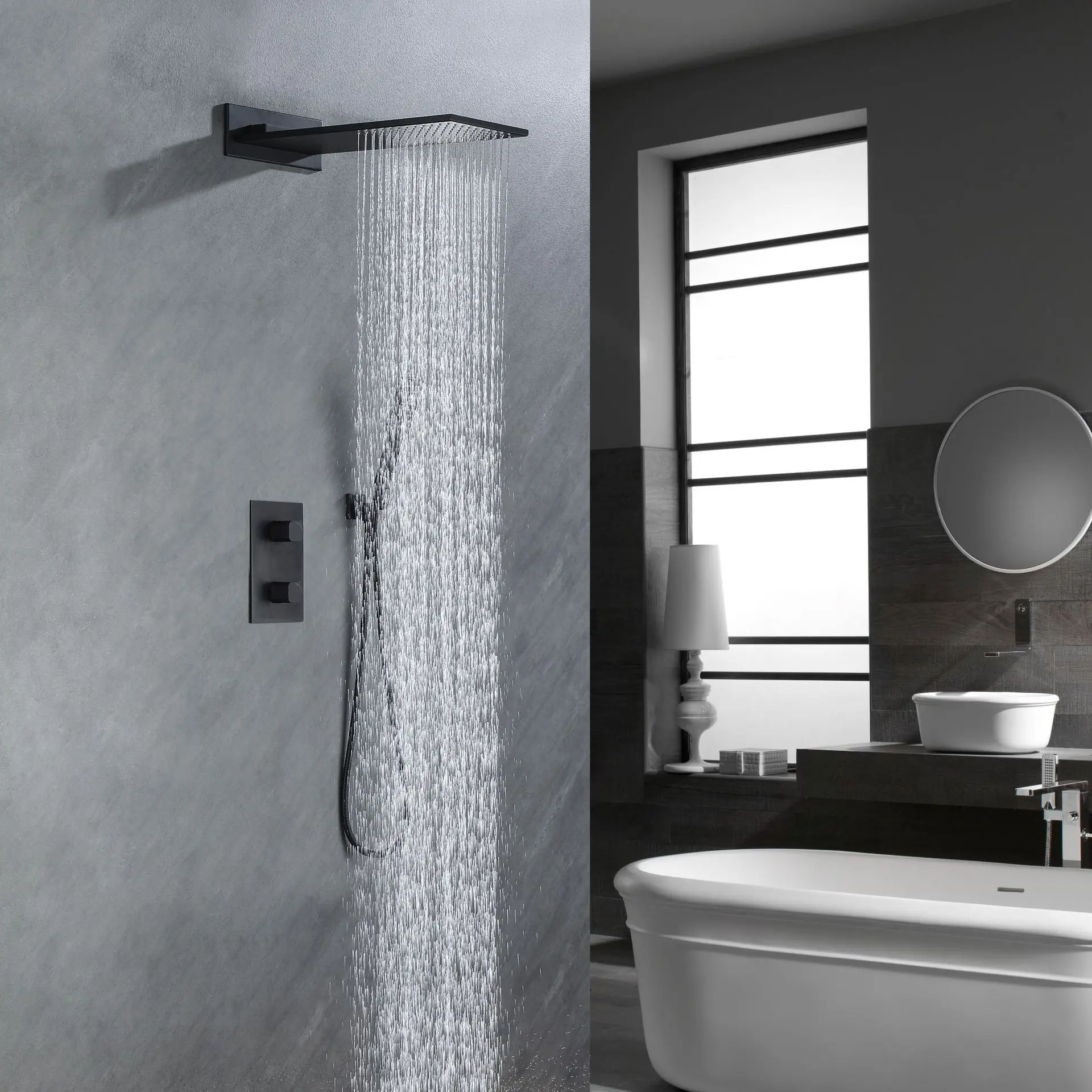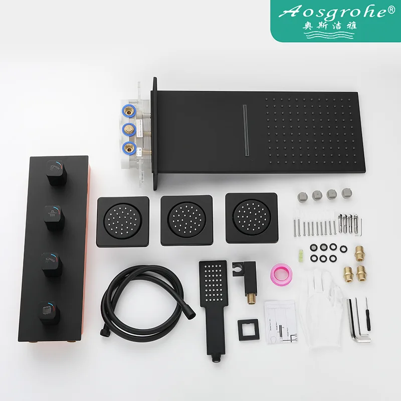Luxury High Quality Wall Mounted Bathroom shower faucet set Brass Waterfall Rainfall Modern Hot Cold Water Shower set,Black