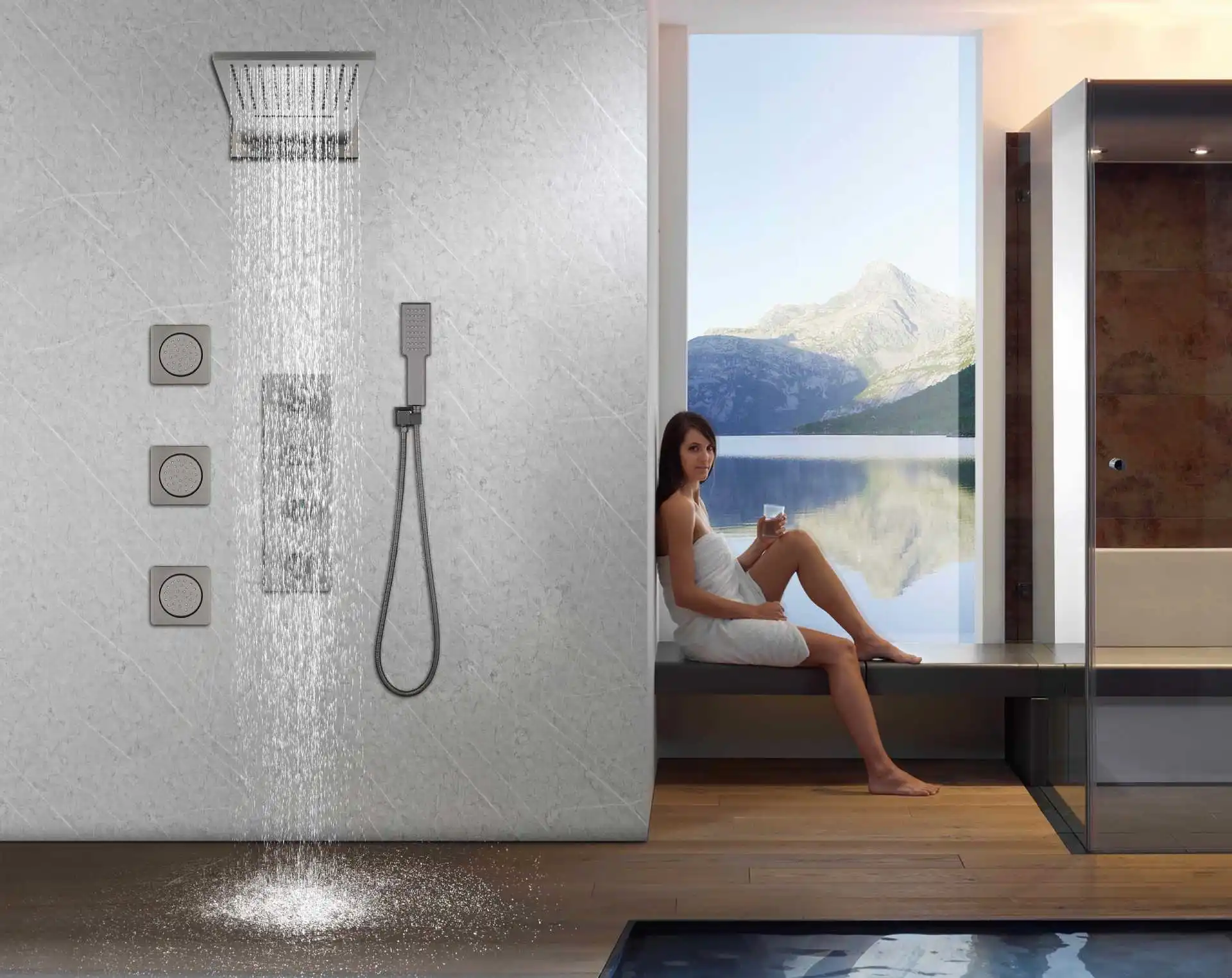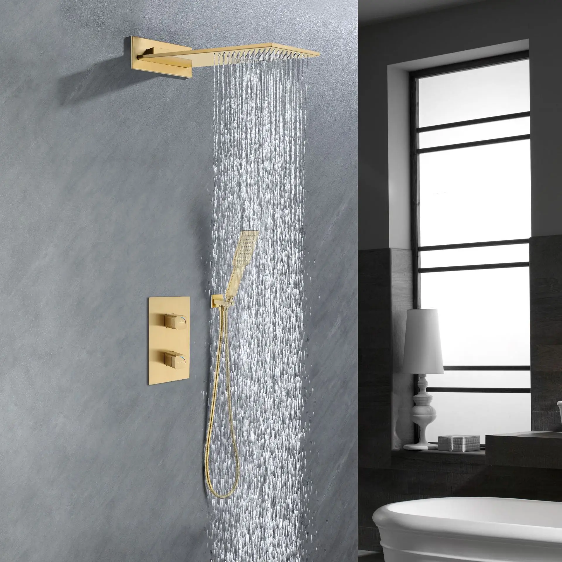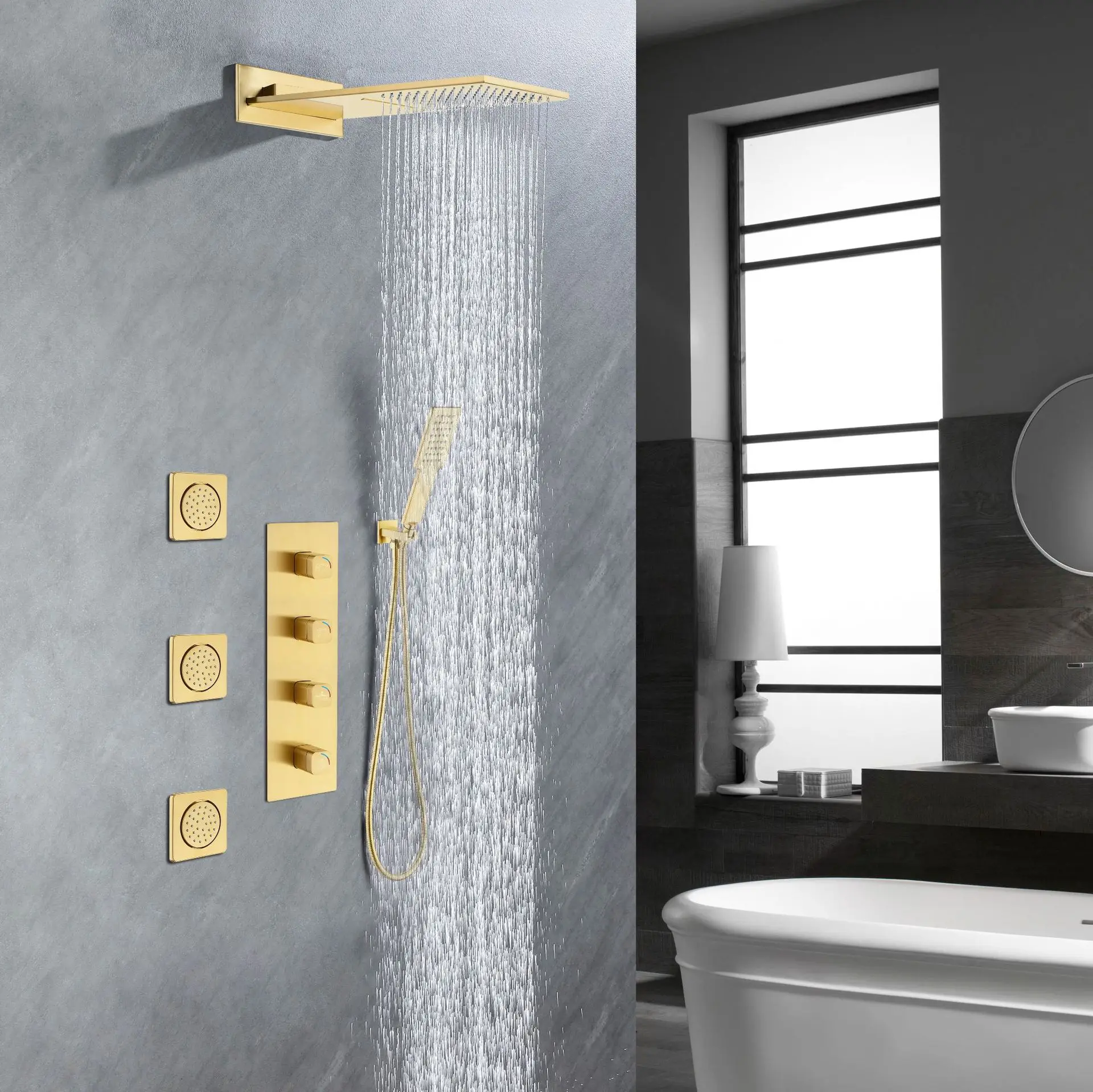 Luxury High Quality Wall Mounted Bathroom shower faucet set Brass Waterfall Rainfall Modern Hot Cold Water Shower set,Black