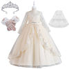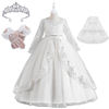 Luxury Long Sleeve Lace Embroidered Flower Formal Dress for Girls Christmas Kids Wedding Evening Bridesmaid Party Long Dresses