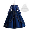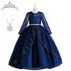 2-12Years Luxury Long Sleeve Lace Embroidered Flower Formal Dress for Girls Christmas Kids Wedding Evening Bridesmaid Party Long Dresses Graduation Ceremony Clothes