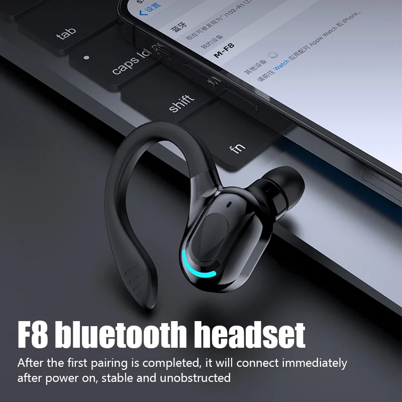 M-F8 Wireless Bluetooth 5.2 Earphone Ear Hook Mini Business Headphone HIFI Bass Noise Cancelling Sports Noise-canceling Earphone