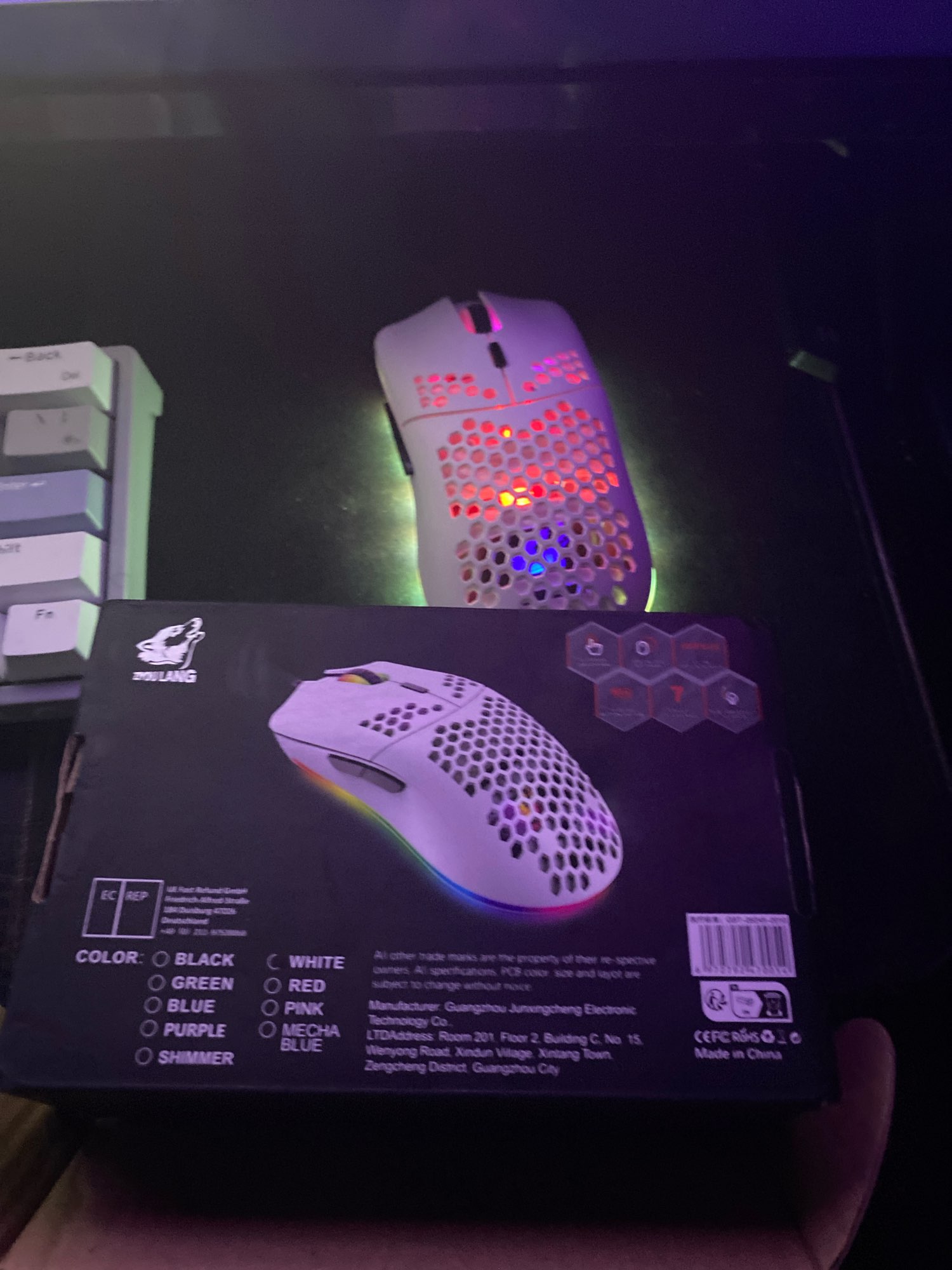 • RGB colorful lightingThe lightweight and simple features make the mouse perfect for the journey, office, home