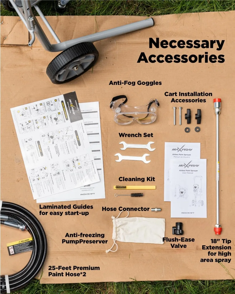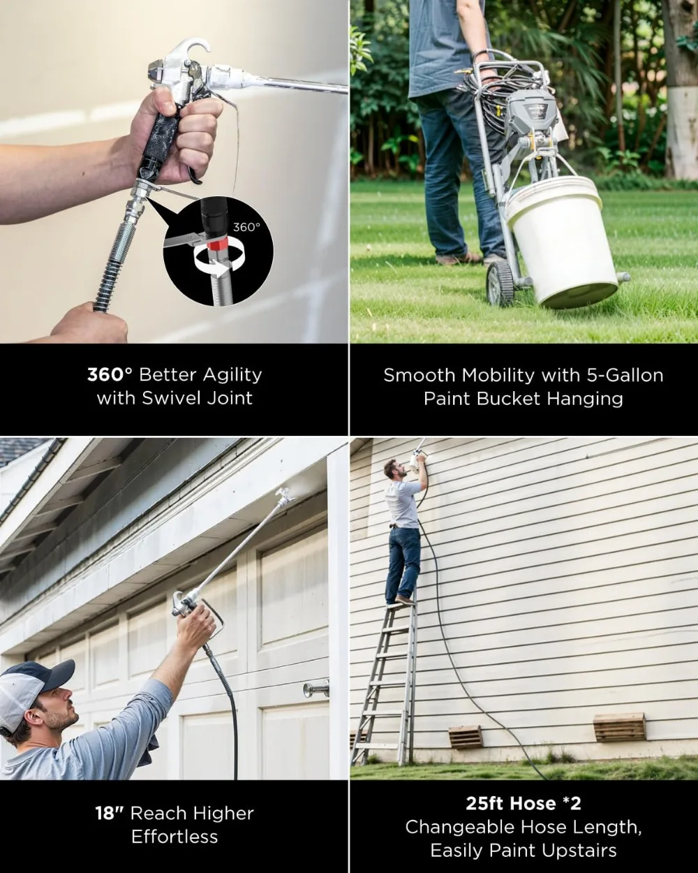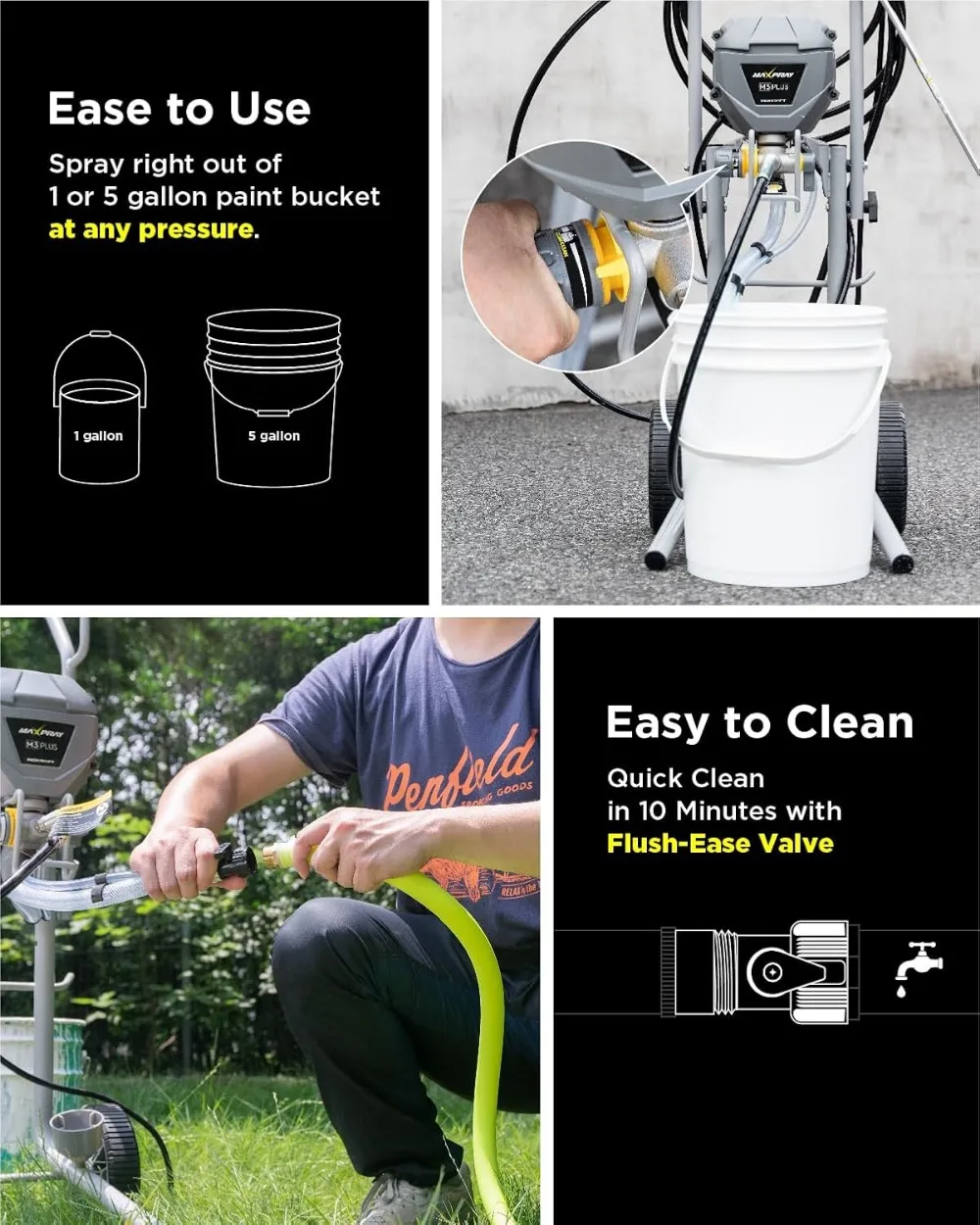 - Friendly to Beginners, Trusted by Pros – Jump right into your painting projects with user-friendly guides and extensive YouTube tutorials that make setup a breeze. Enjoy enhanced agility and precision thanks to our airless paint spray gun’s 360° Swivel Joint. Clean in just 10 minutes with our Flush-Ease Valve-achieving a spotless finish with minimal effort.