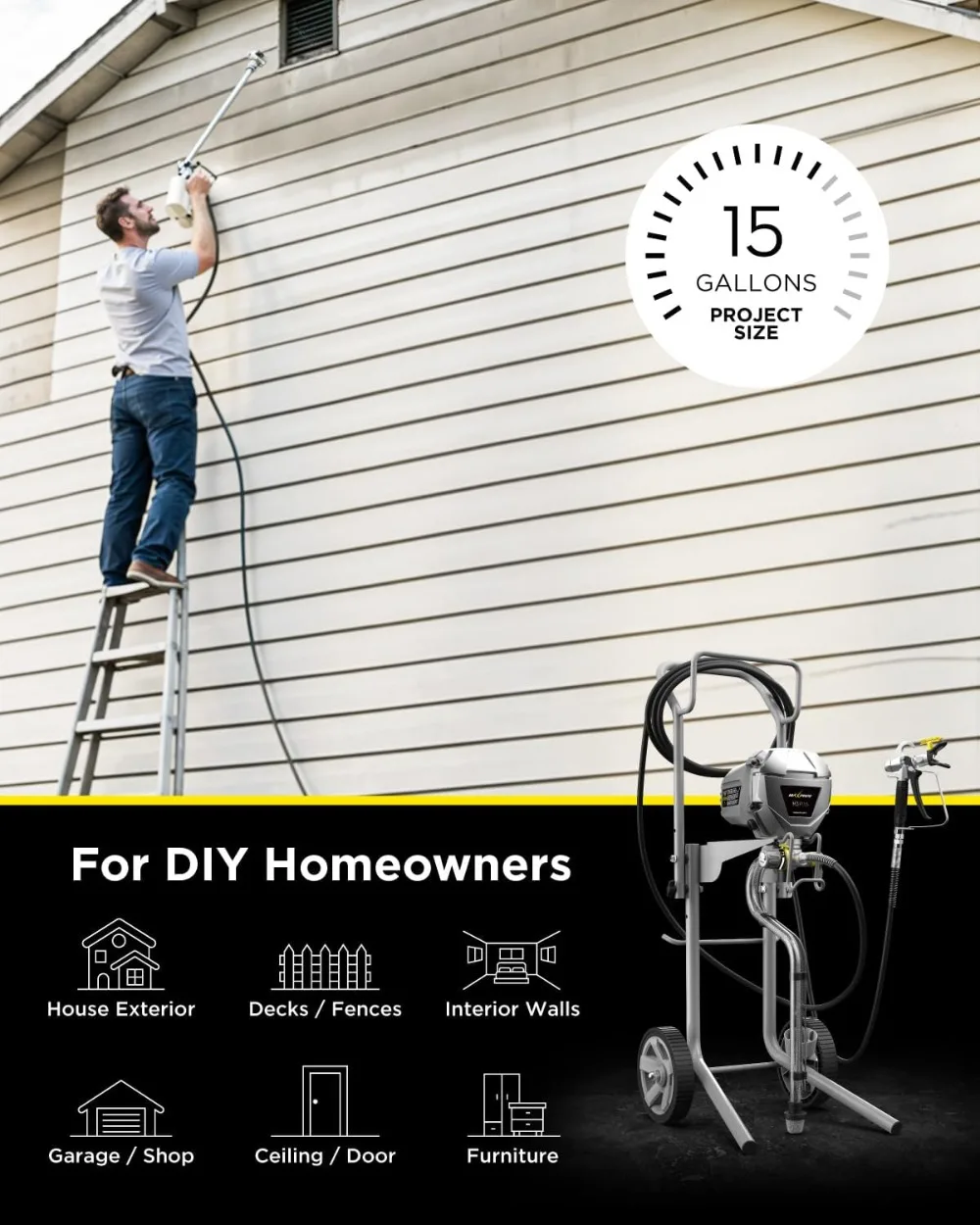 - Spray more projects each year- Annual use recommendation is up to 200 gallons per year, upgrade your DIY game with the MaXpray M3 airless paint sprayer! Ideal for up to 1 or 15 gallon DIY painting projects, use it for interior furniture and walls, or for exterior decks, siding, fences, garages, shops, and more.