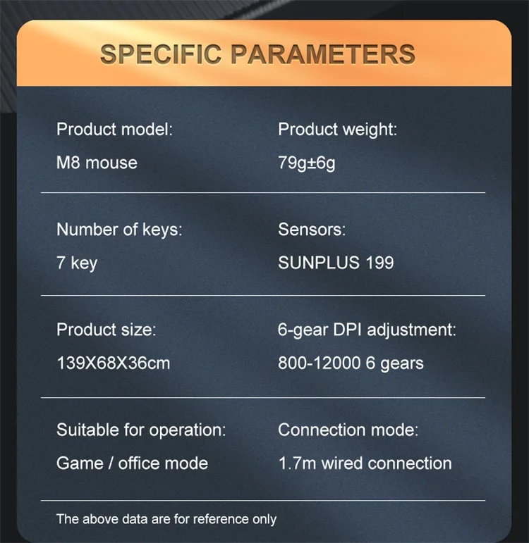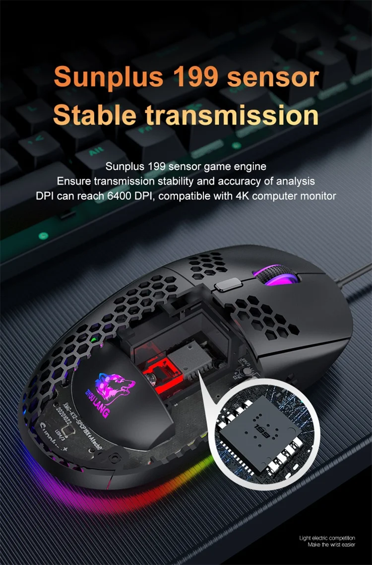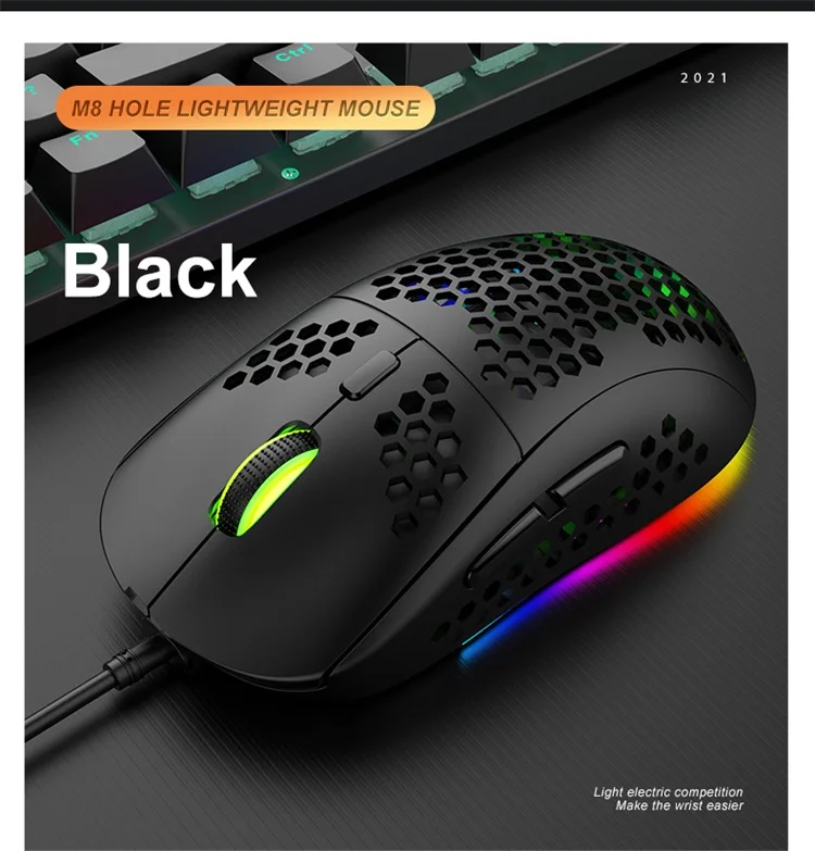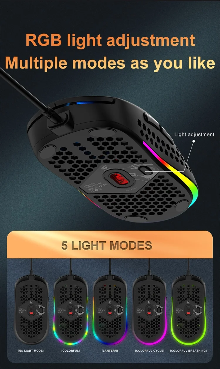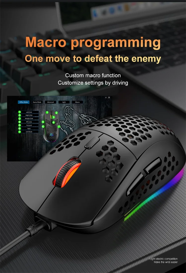 • Ultralight Honeycomb Design :The M8 gaming mouse features an ultra-light honeycomb shell, making it comfortable for long gaming sessions and easy to maneuver.