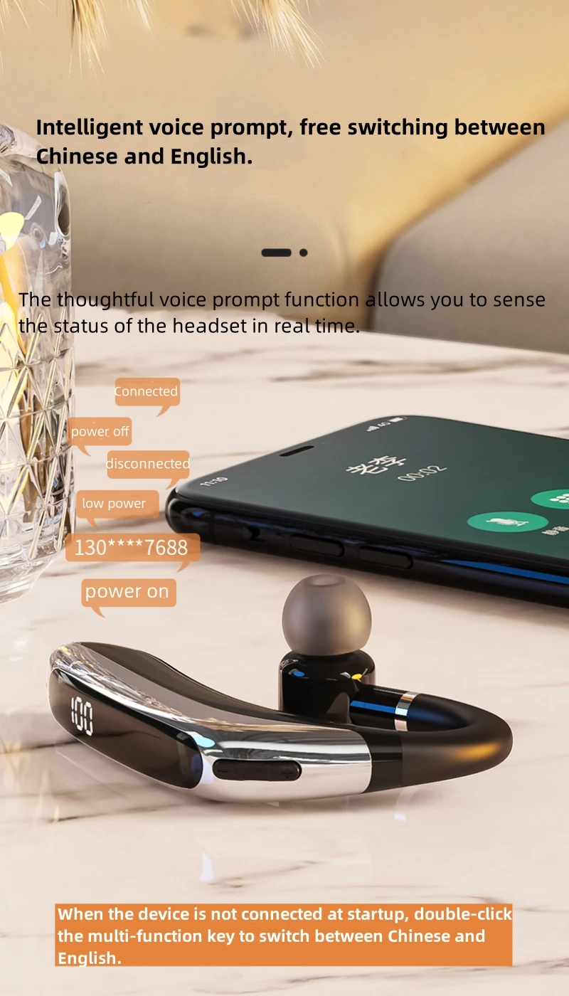 The thoughtful voice prompt function allows you to sense the status of the headset in real time.