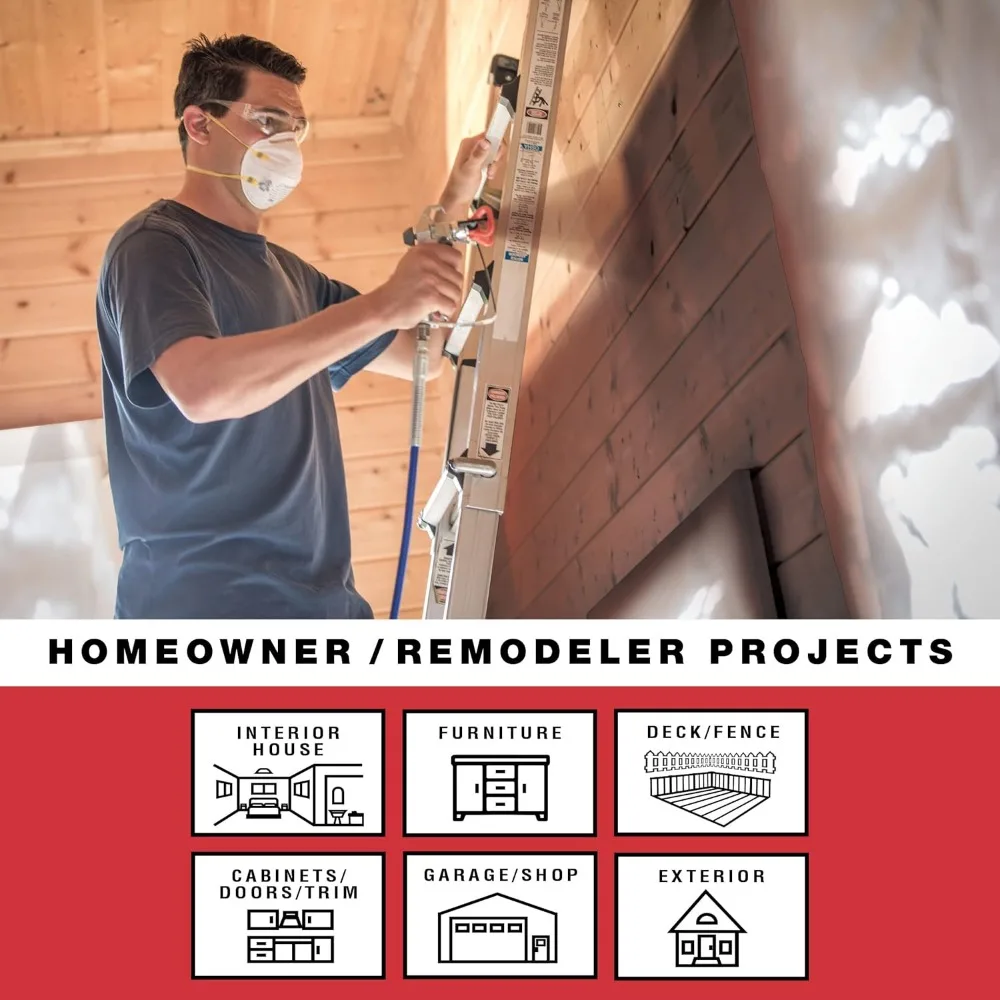 - Supports up to 75 ft of paint hose to reach peaks or second stories without diminishing performance