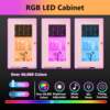【RGB Cabinet Lighting & Jewelry Display Shelf】Set the mood with built-in RGB lights, controlled via app or switch. The top shelf includes a recessed jewelry organizer, perfect for displaying earrings and accessories in an elegant, dust-free way. A stylish combination of aesthetics and functionality