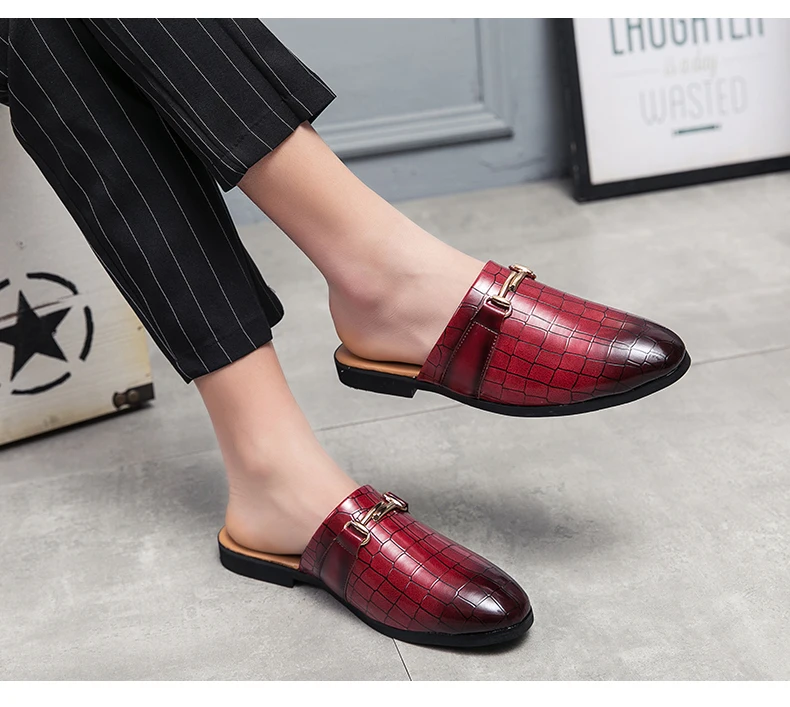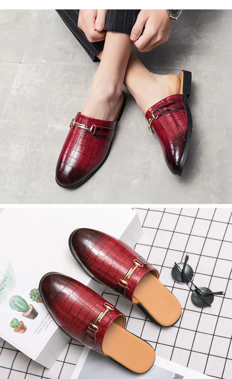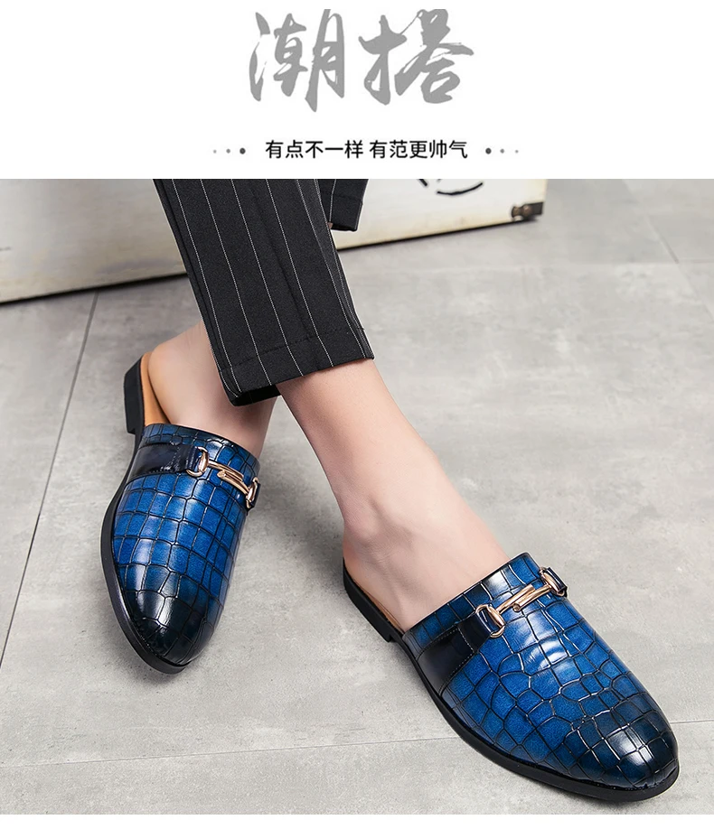 Male Casual Half Drag Loafers Red Blue Youth Fashionable Slippers Summer Walking Slides Luxury Brand Men Breathable Slides