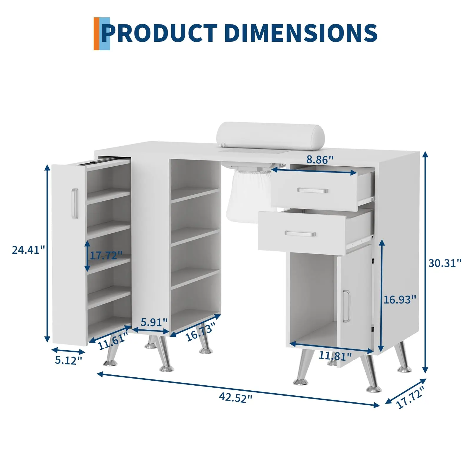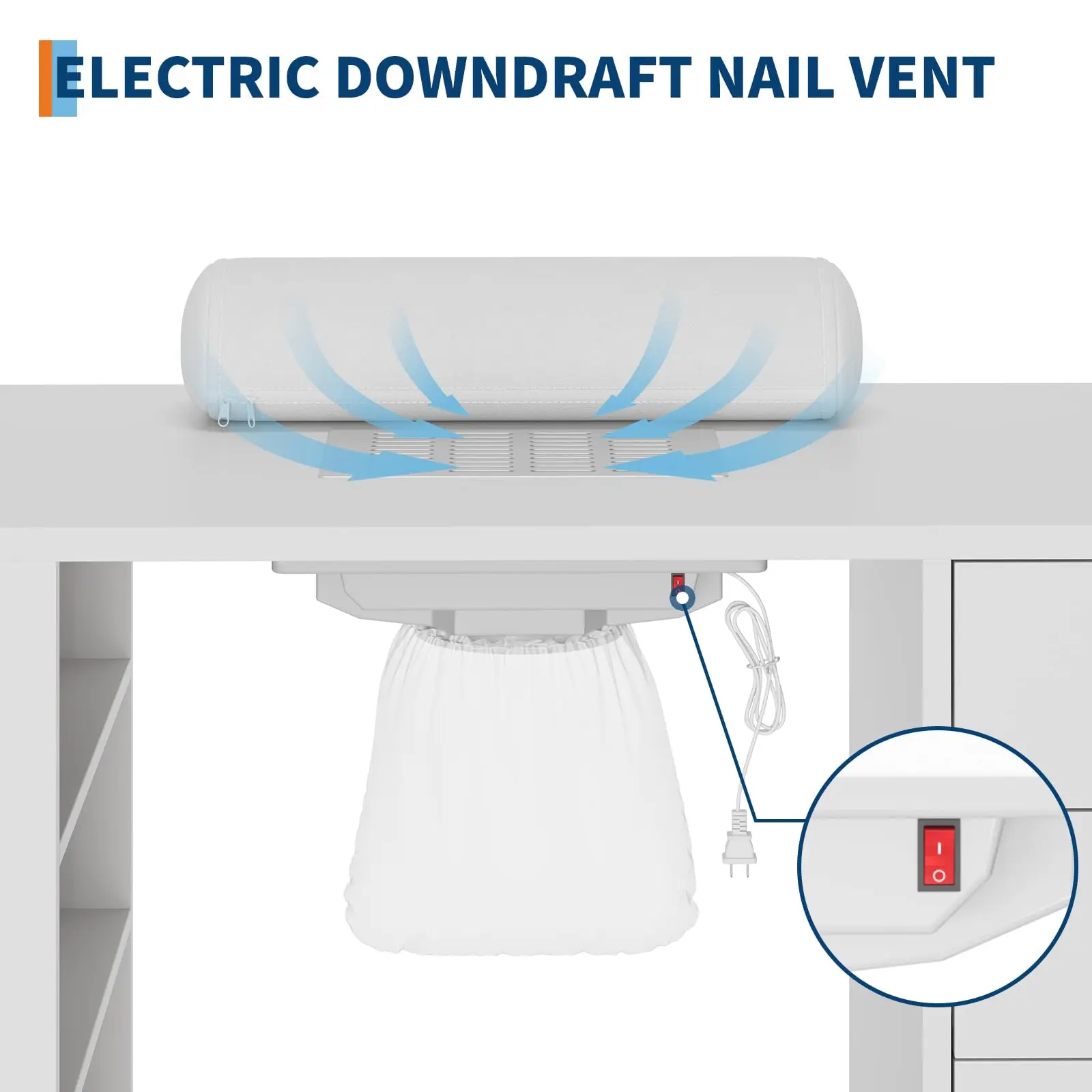 【Efficient Dust Collection System for Nail Techs】- This nail desk is equipped with a powerful electric dust collector, designed to effortlessly capture nail shavings and dust with a simple press. Keep your workspace clean and hygienic, making it an essential manicure table for professional nail techs.