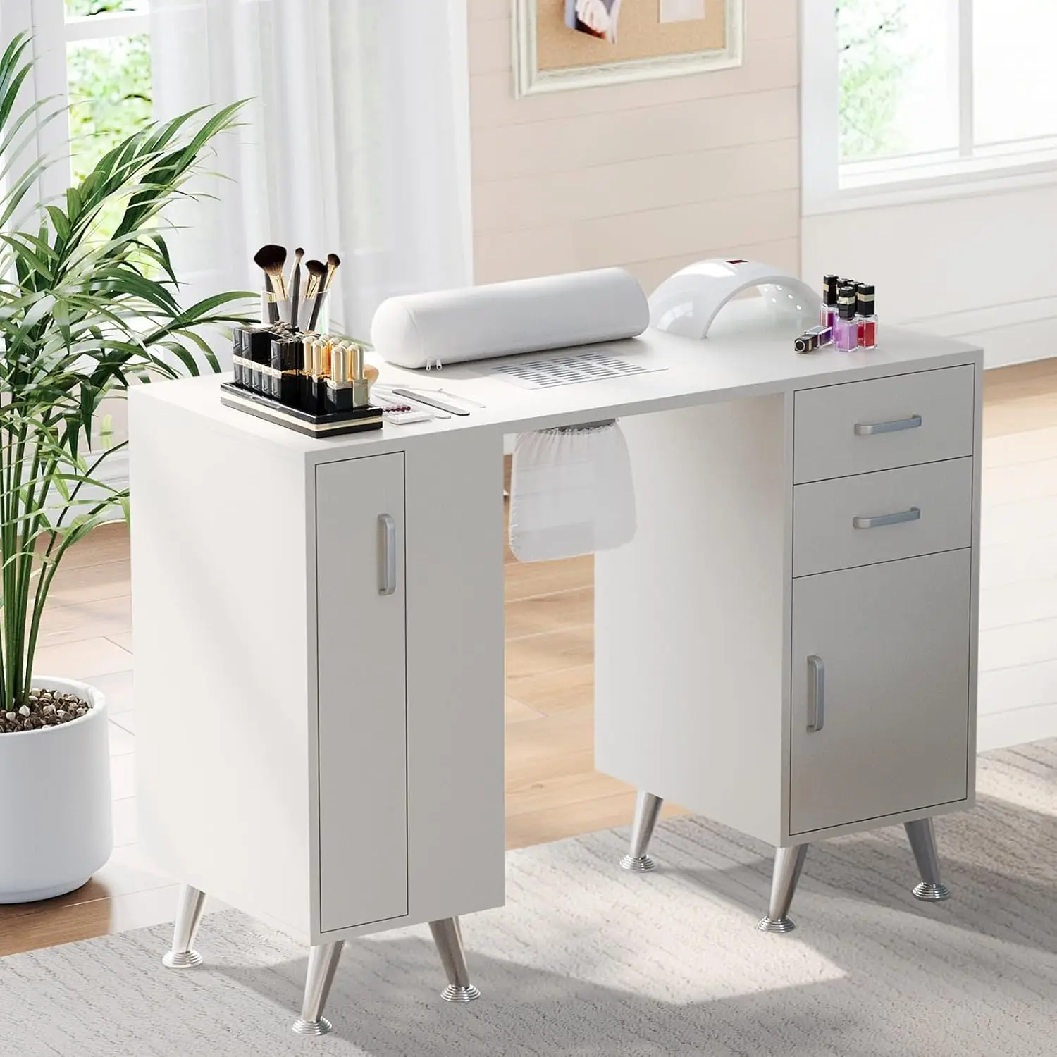[Versatile Design for Multiple Uses]: This Manicure Table salon spa equipment functions as a nail tech station, a stylish dressing table, or a computer desk, offering a versatile solution that effortlessly transforms your space to adapt to your lifestyle.