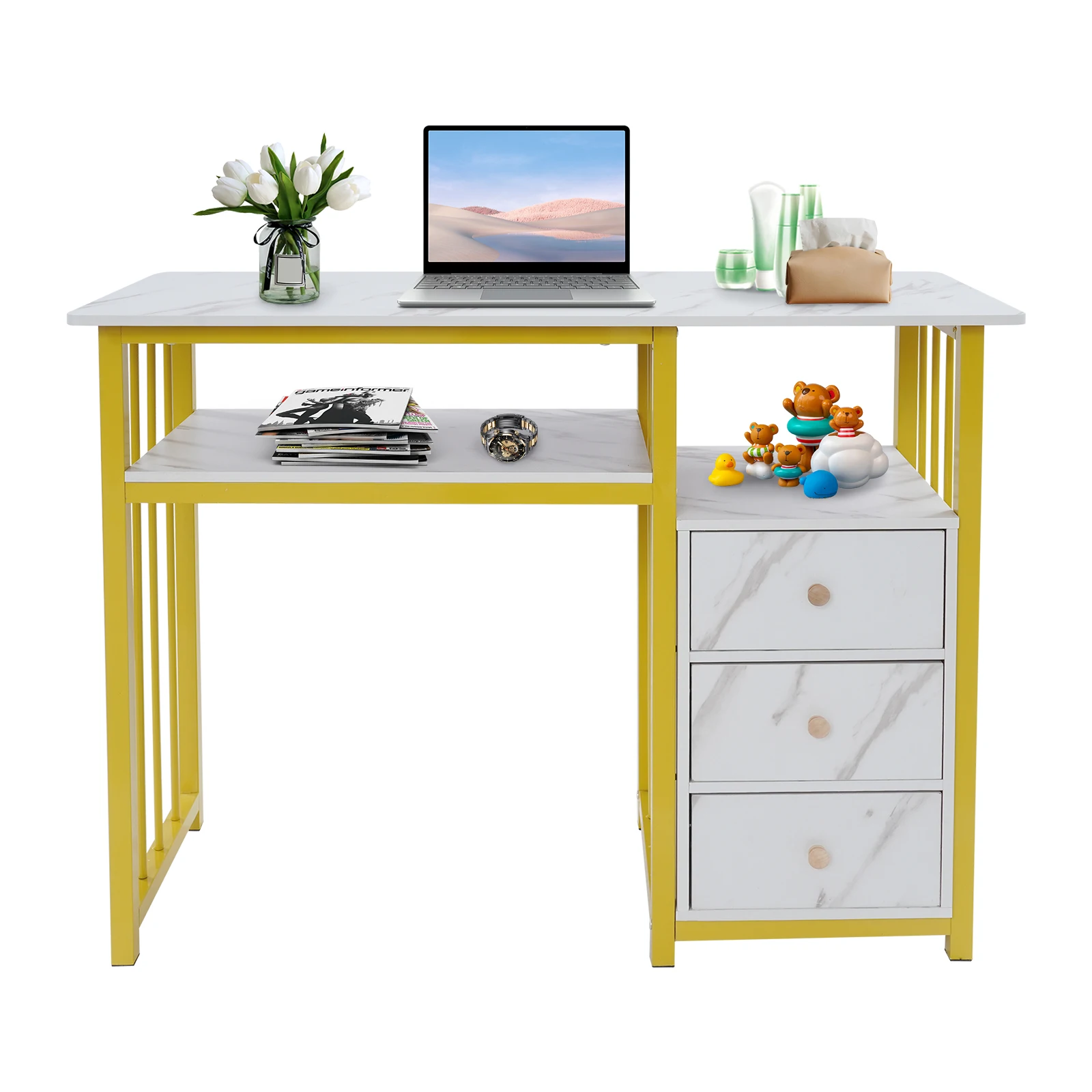 ✅ Elegant & Safe: Marble finish + gold/white tones elevate decor; rounded smooth edges prevent scratches, perfect for salon, home studio, or guest room.