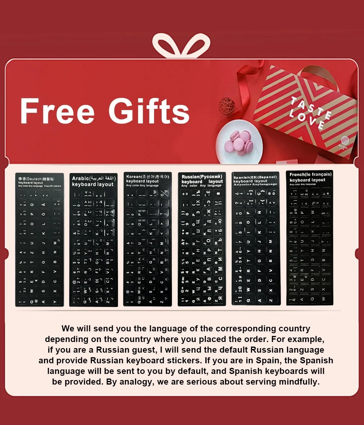 We will provide the language interface keyboard stickers and plug corresponding to the country in which the order was placed. For instance, customers in Russia will receive materials in Russian, while those in Spain will receive materials in Spanish. We are dedicated to delivering attentive and region-specific service.