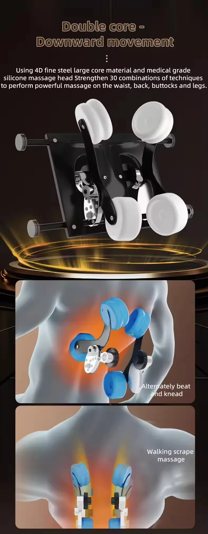 * Full-body massage, simulation of human kneading and shiatsu massage.
