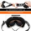 The JULI ski goggles featured with double lens made of solid PC material which came with unique material anti-fogging treatment and 100% UV400 protection that cuts the glare.