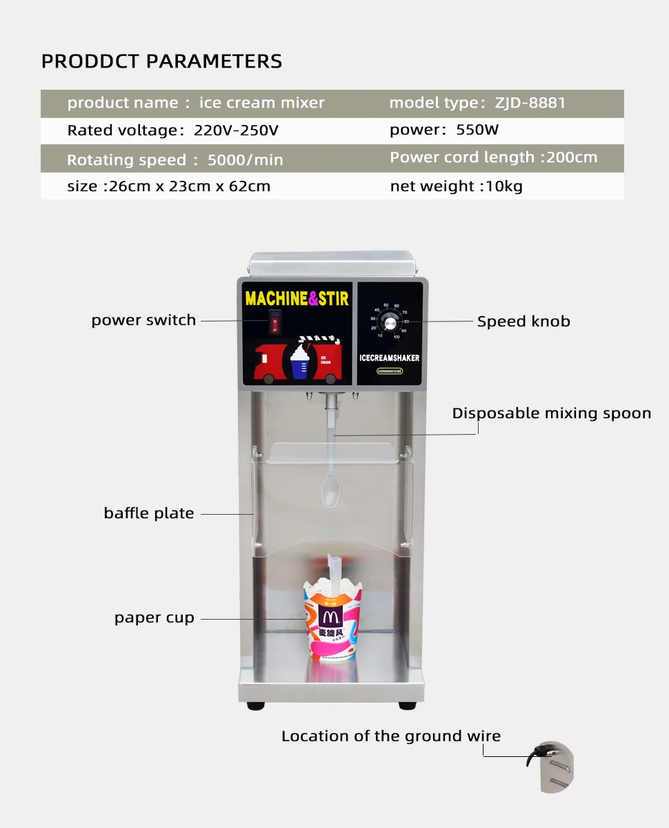 With a swirling motion,gradually move the cup up and down around the spinning agitator and completely around all sides of the cup.(If icecream is hard,this should be done slowly.)
