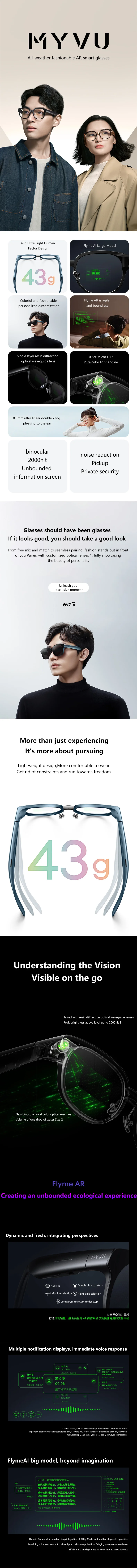 MEIZU MYVU Smart AR Glasses with Voice Prompter Real-time Translation Subtitles Conference Assistant Navigation AI Glasses