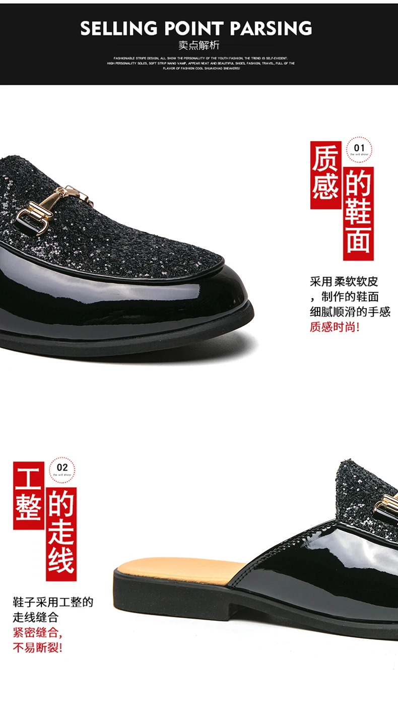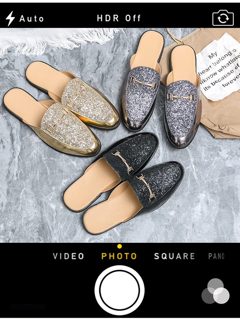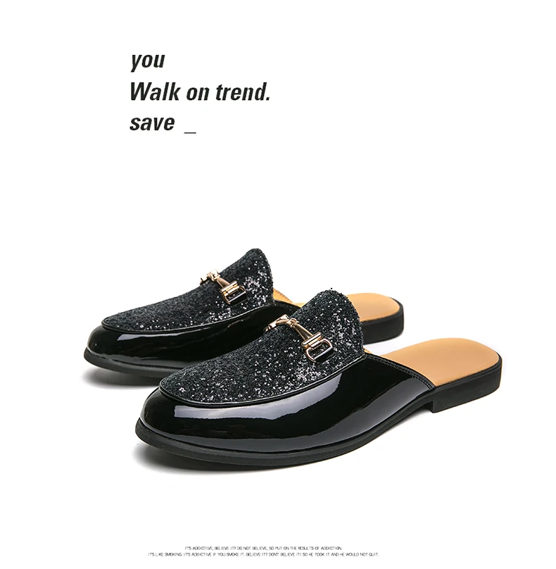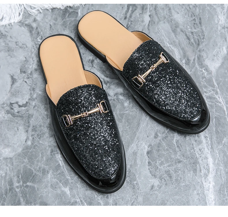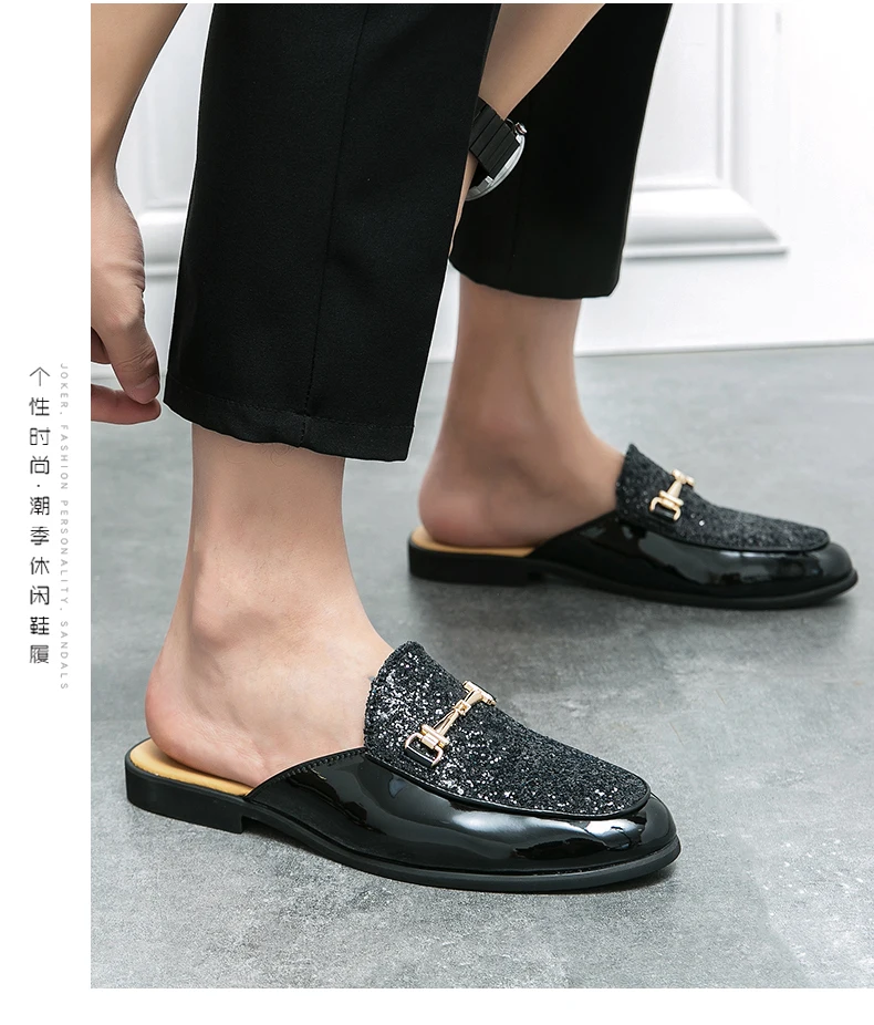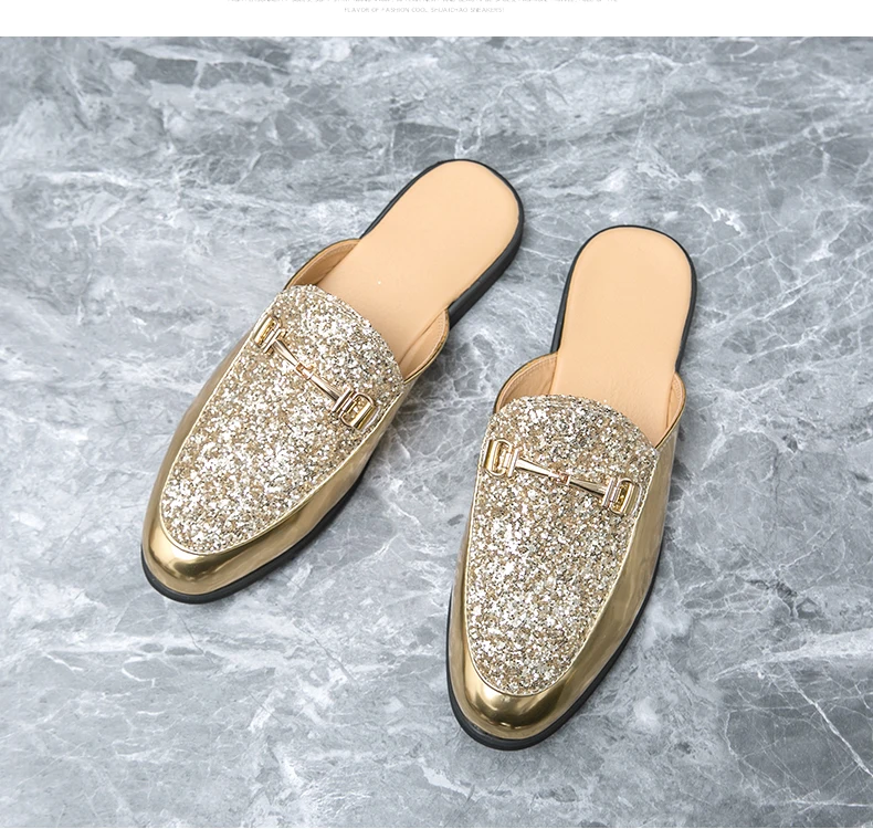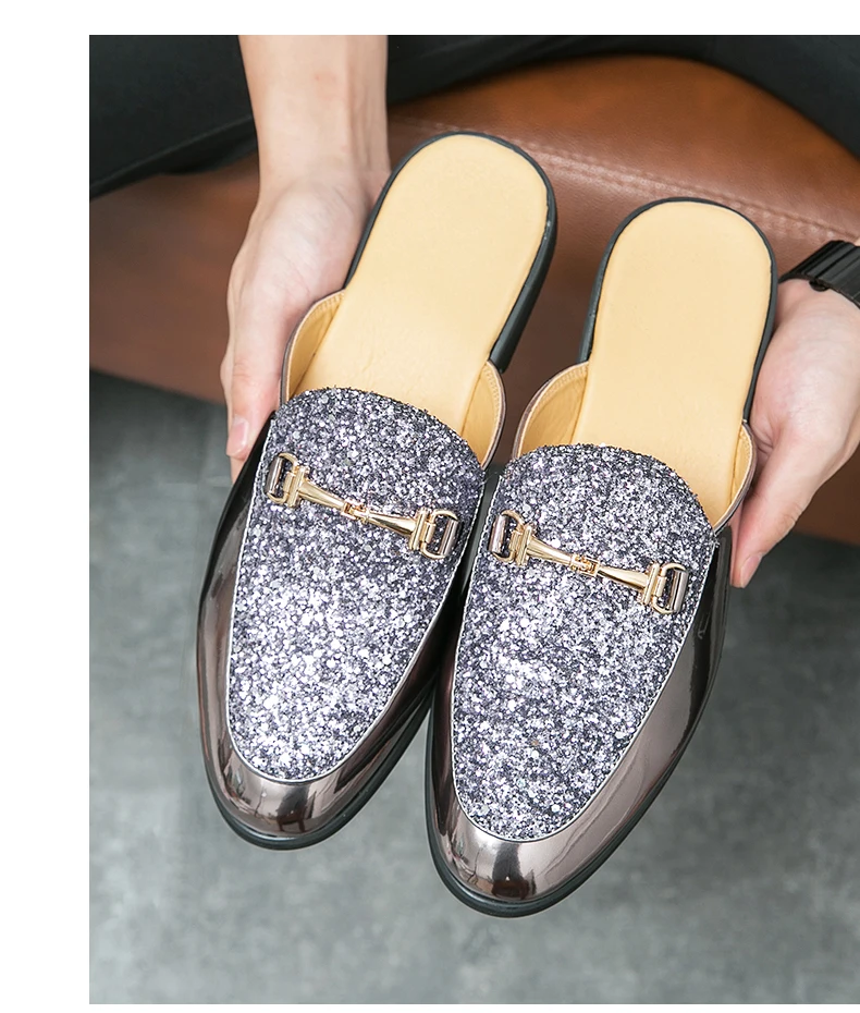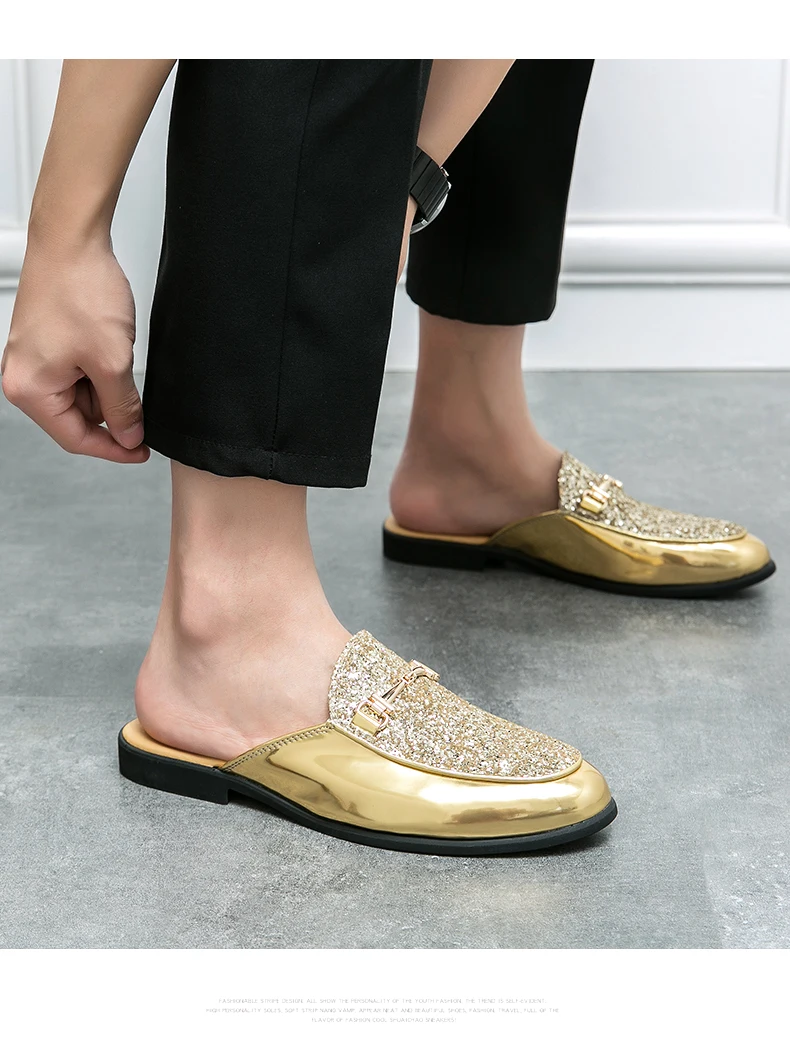 Men Fashionable Half Slippers Silver Gold Youth Casual Walking Loafers Breathable Mens Half Drag Slides Plus Size 38-47