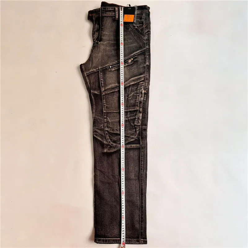 Matches description. Its design also allows to use the pants to dress. Trouser measurements practically match those reflected by the seller. Are almost the European ones. In my case the waist was a little smaller (-0,5 cm.). Although it is good pants, it will improve the quality of the zipper. Lis back pockets are low. The main zipper for fastening is short and high, so it makes it a little uncomfortable.