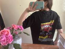 Arrived in 13 days!!!! Amazing! I love the fabric, its so nice to your skin! Instead of sticker this store makes a prints, AND I LOVE THIS FACT SO MUCHHHHH. It will be easy to wash clothes. Got L size for my boyfriend, hopefully it will fit him nicely. But you can see how it sits on me. Im 175cm height, usually wearing small size.Really recommend clothes from this store!!! (my camera is broken, sorry)