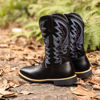 Men’s creative pattern embroidered retro rope boots, wide-toed men’s cowboy boots, high-top riding