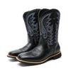 Men’s creative pattern embroidered retro rope boots, wide-toed men’s cowboy boots, high-top riding