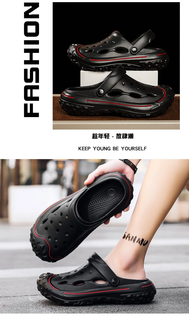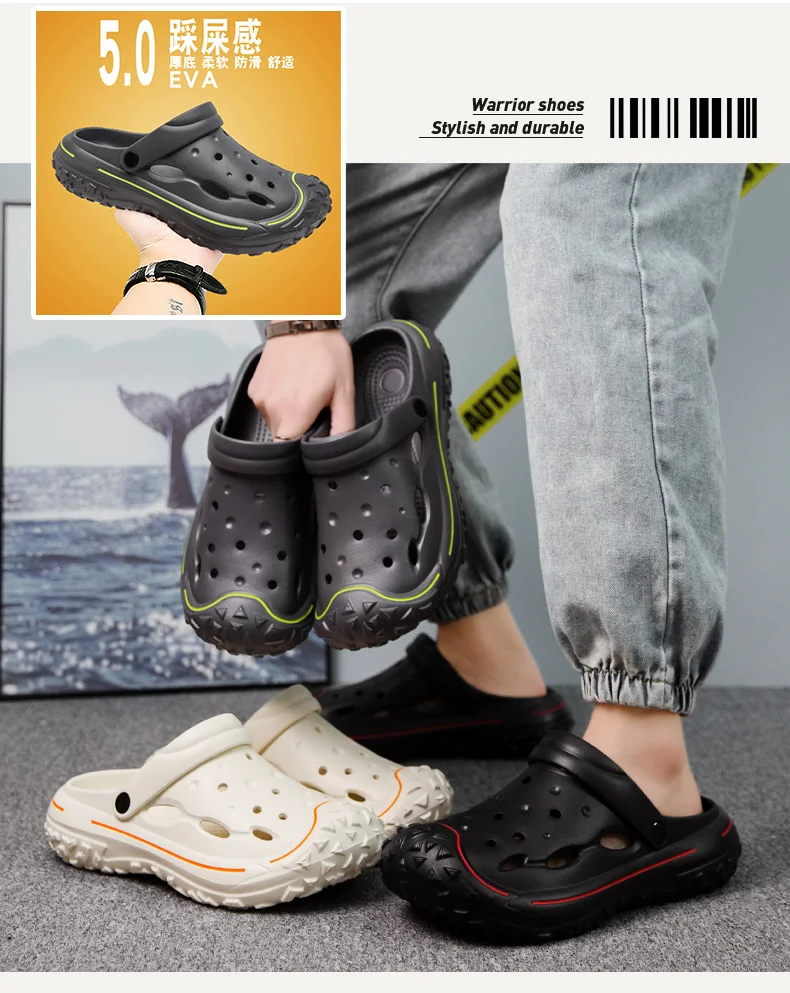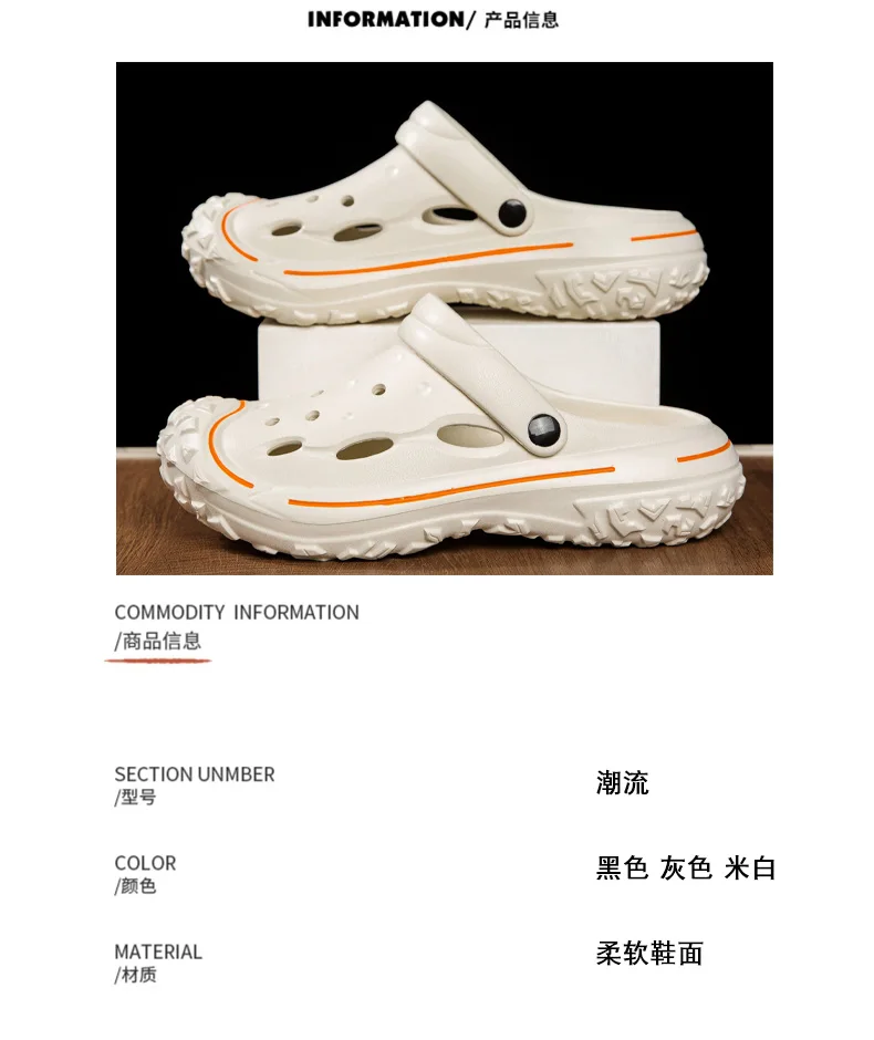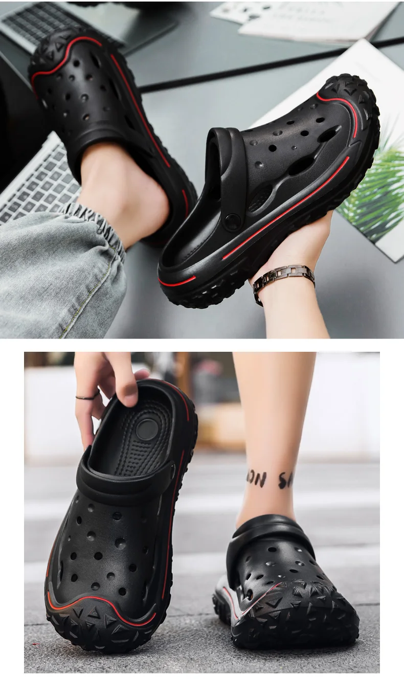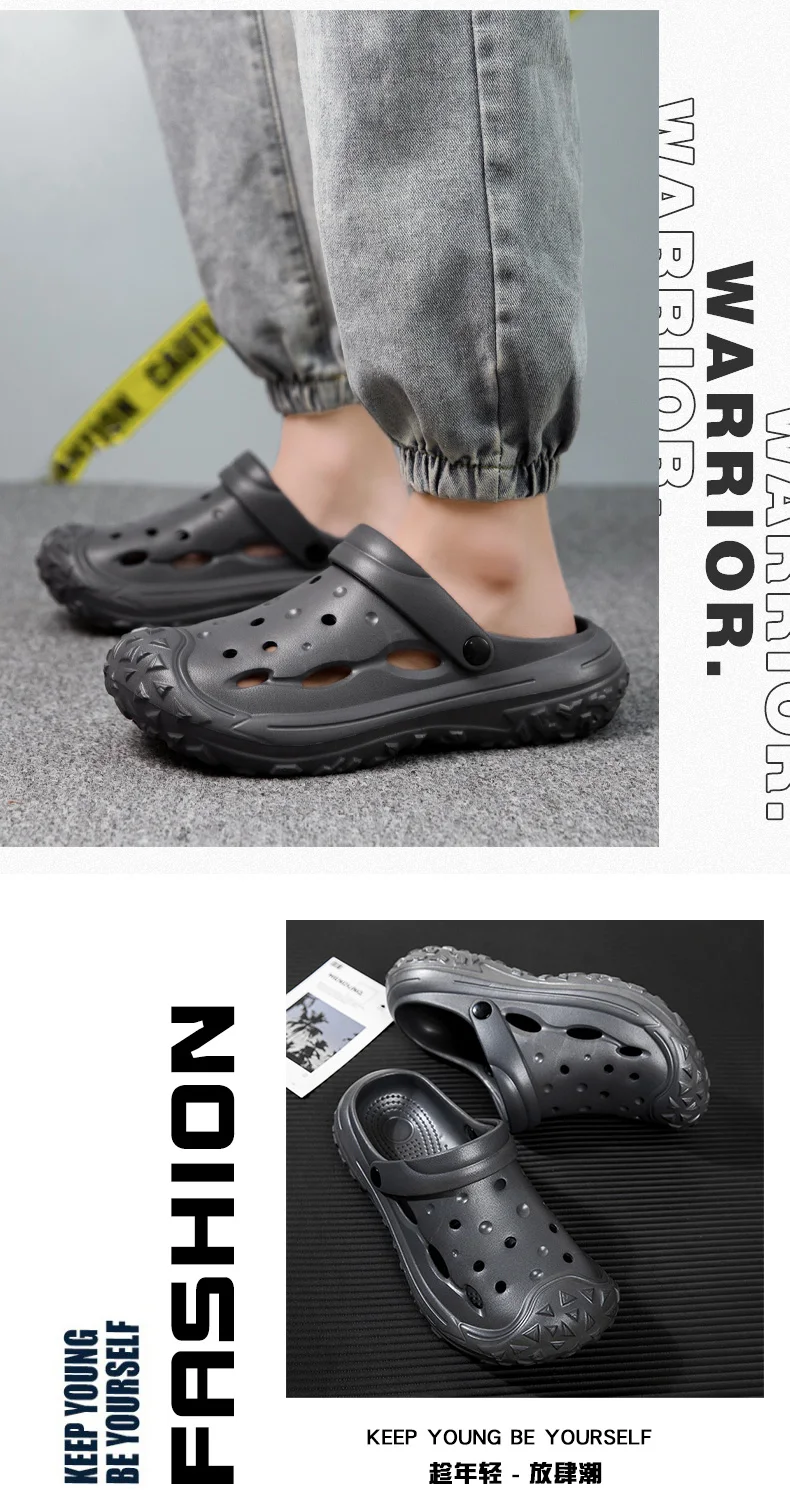 Men’s Hole Shoes, Summer Anti Slip, Outdoor Garden Sandals, Closed Toe Stool Feeling, Beach Slippers, Thick Soles, Soft Soles