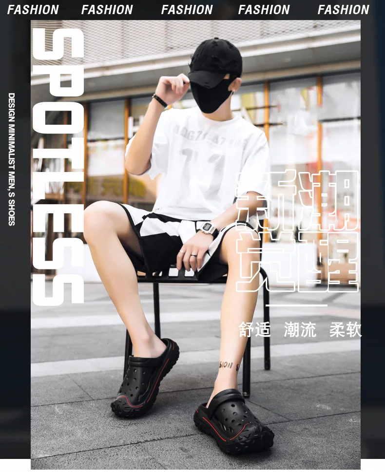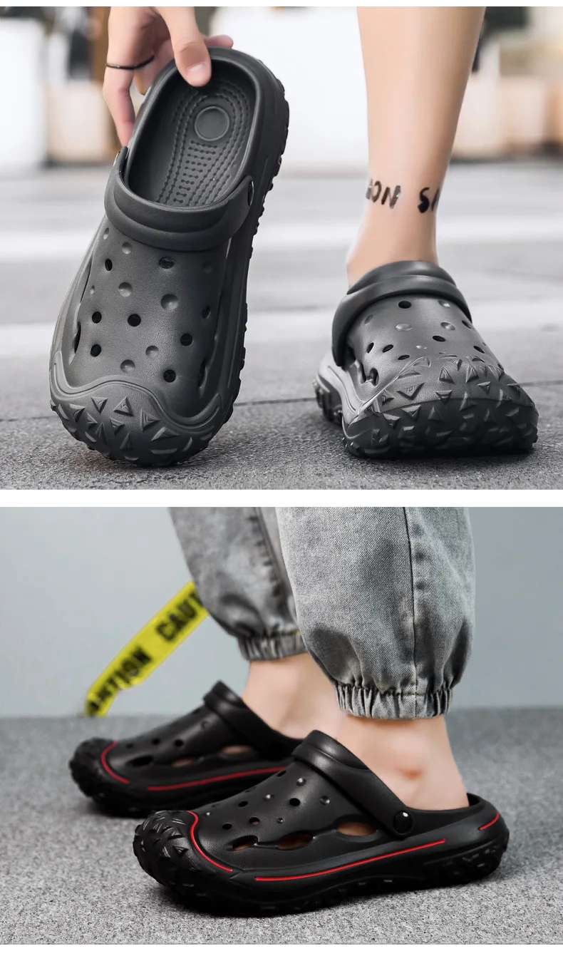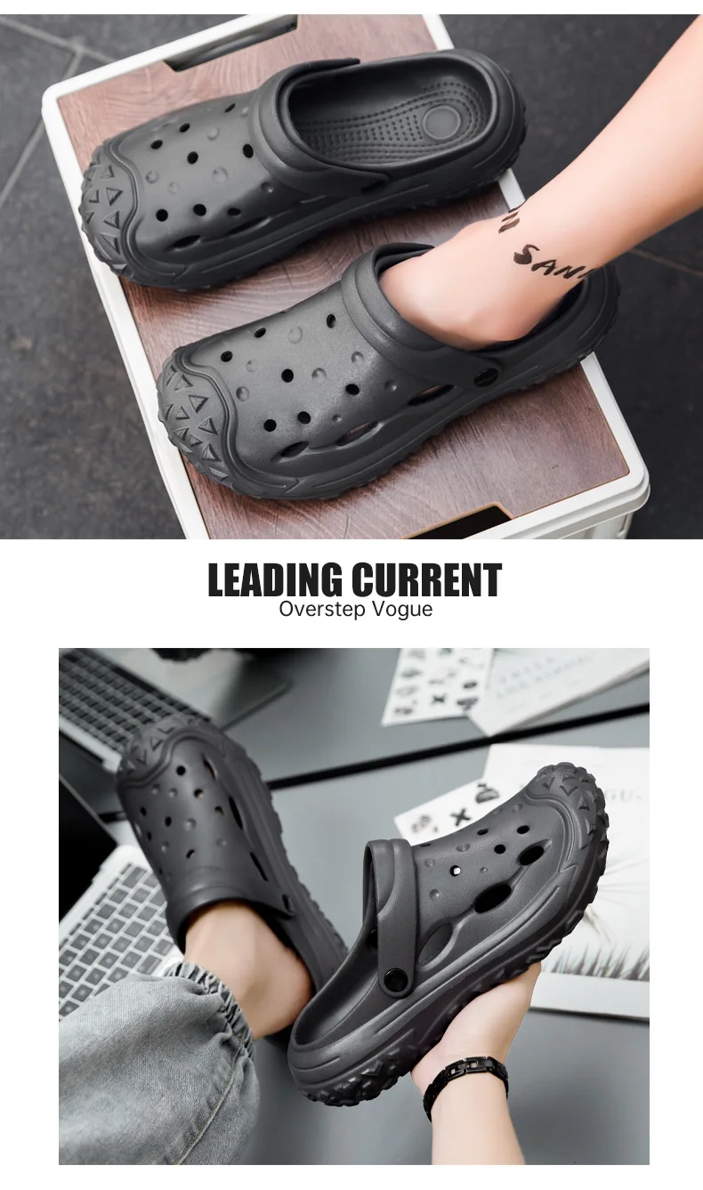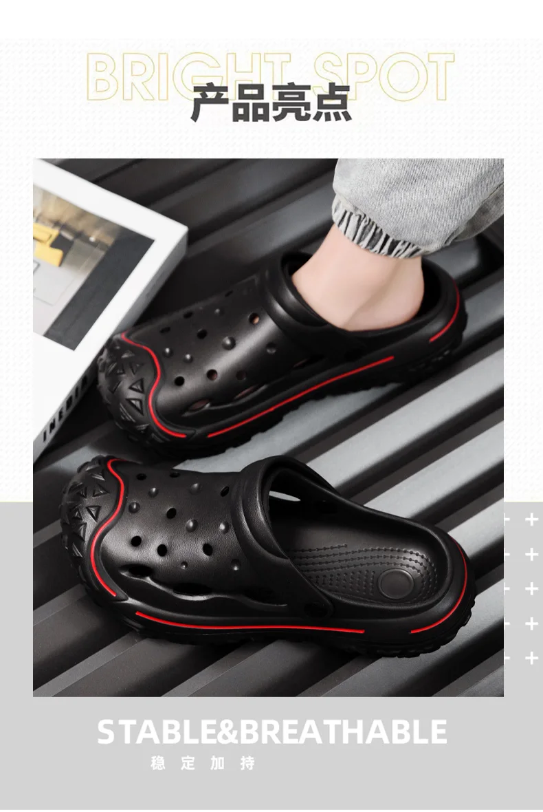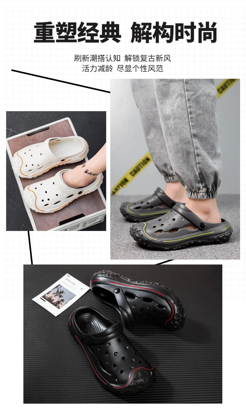 Men’s Hole Shoes, Summer Anti Slip, Outdoor Garden Sandals, Closed Toe Stool Feeling, Beach Slippers, Thick Soles, Soft Soles