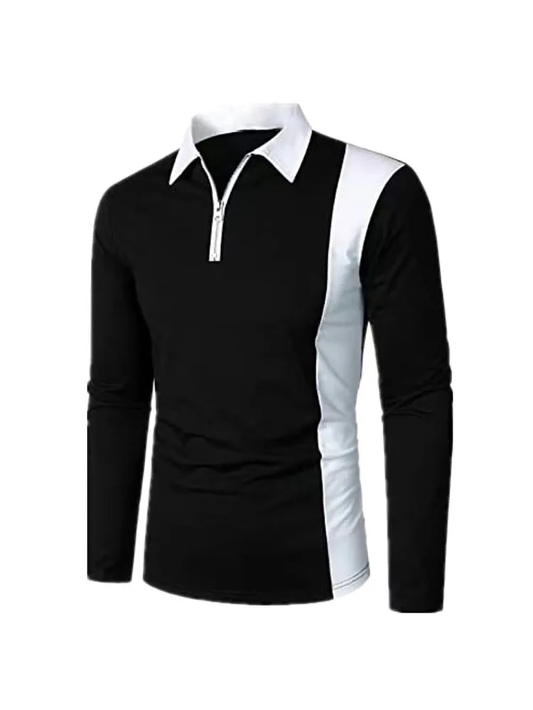 Men’s long sleeved two-color patchwork fashion men’s color patchwork fashion matching men’s lapel long sleeved men’s POLO shirt