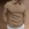 Men’s New Autumn Fitness Business Casual Standing Collar Long Sleeve Vertical Strip V-neck Polo Shirt