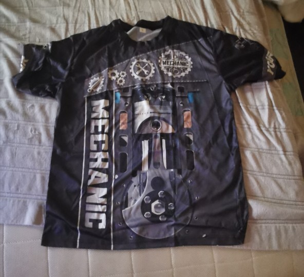 There is a print on the back, even if it is heavy. Made of fast-drying material Although it is L size at 173cm 71 kg I think it's good. Design is also cool I'm going to the circuit and I think it looks good. From now on, we will repeat depending on the durability we wear