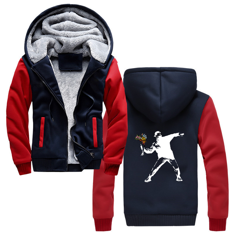 Mern Hoodie Flower Throw Thrower Protester Banksy New Grafitti Graffiti Sprayer Flowers Hoody Streetwear Jacket Zip Up Hoodies