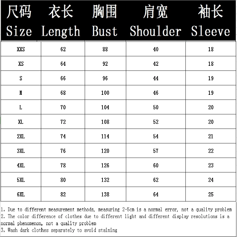 Size XXS ,XS , S, M, L, XL, 2XL, 3XL, 4XL, 5XL ,6XL