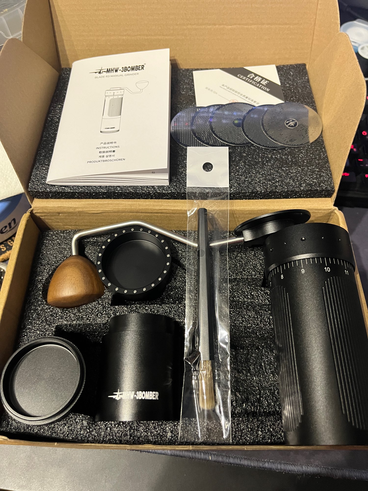 Excellent grinder, I bought other grinders, of similar price, only the 3bomber blade R3, has a quality construction and weighs approximately 738 gr. Best of all is the sensory, only tasted for espresso, and has the sensory that I always liked, now I will only use the 3bomber blade R3, excellent sensory, full-body, I liked👍👍👍👍👍, I still have to prove it to drained coffes. The Grinder arrived too quickly