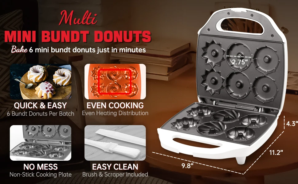 - [DONUTS & MORE]: Unleash your creativity by exploring endless possibilities with mini donuts or bundt cakes, experimenting with a variety of delectable glazes and toppings. Ideal for both individuals and families.