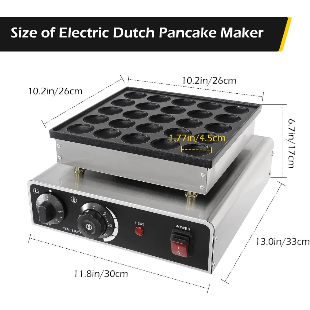 - Widely Applications- This mini Dutch pancake maker is suitable for baking pancakes, muffins or Dutch pancakes. These pancakes can be used with syrup, chocolate sauce, and butter to make muffin desserts with different flavors. Commercial Dutch pancake baker is widely used in snack bars, restaurants, coffee, restaurants or cold drink shops.