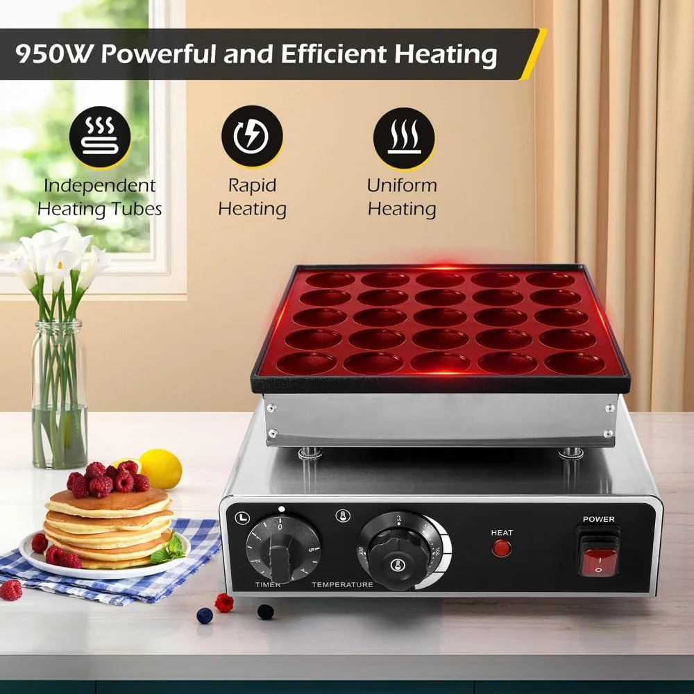 - Sturdy and Durable- The 25pcs mini dutch pancake maker is made of high-quality food-grade stainless steel and with a cast iron plate, the commercial mini pancake maker is sturdy and durable, high temperature resistant, moisture-proof and rust-proof and can be used for a long time.