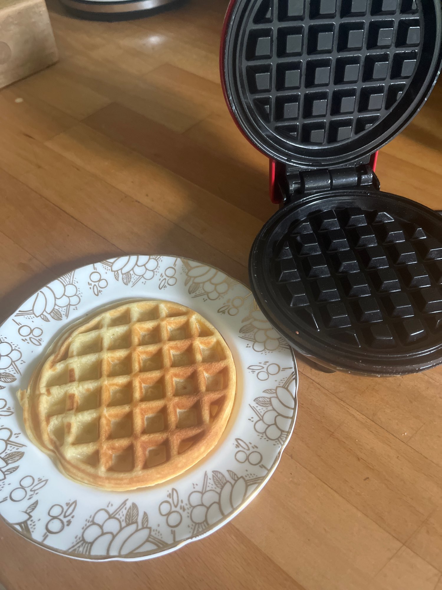 The mini waffle maker just arrived and we tested it straight away. It was a great success! We made 8 waffles and enjoyed them with maple syrup. This was a gift for my 11 year old son and he’s really happy with it.
