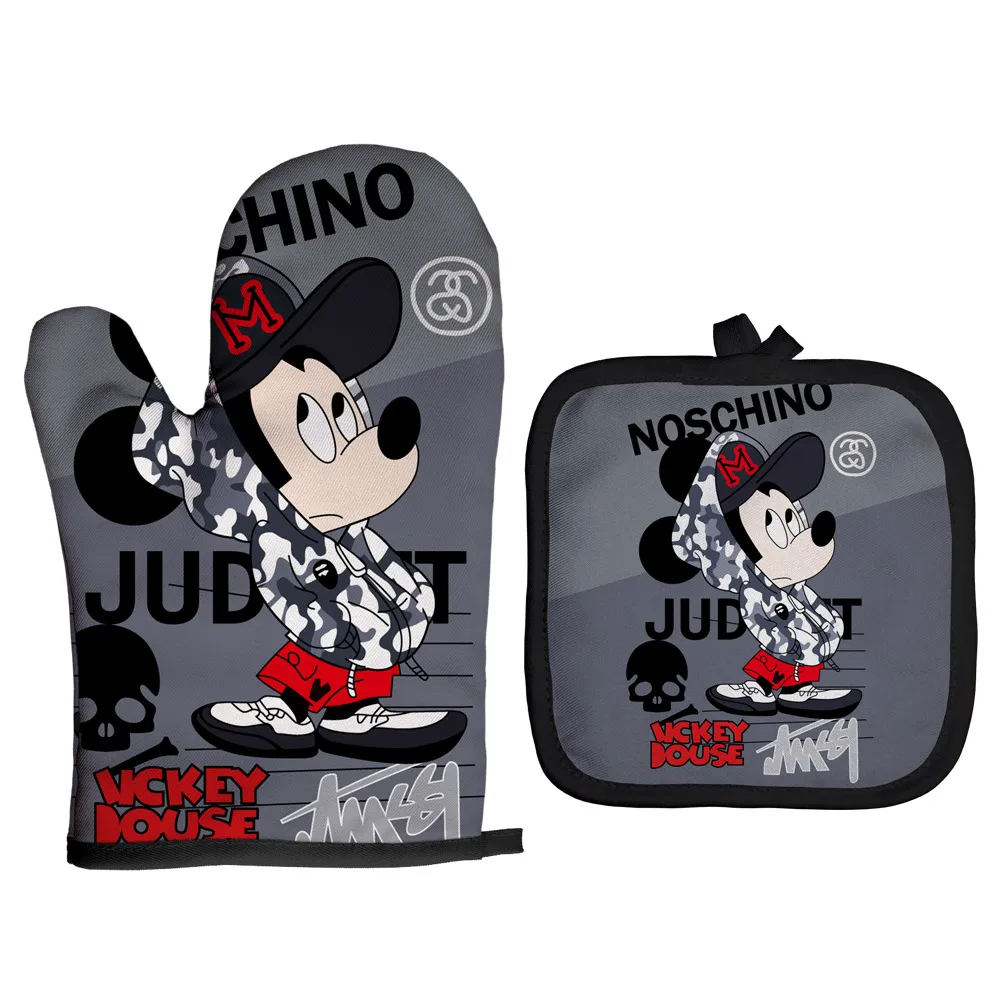 [description] 1X Insulated Gloves 1X Insulated Pad , Insulated gloves, two-sided printing. kitchen cooking insulated product