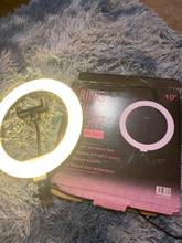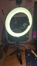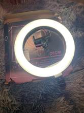 Just as shown in the image, everything arrived well, the box a little mistreated but it is the least of it when the product arrives in excellent condition. It is easy to put together, I had a tripod at home and I fit in exactly with the screws, she was very satisfied.😌