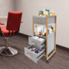 With its attractive appearance, large capacity, and sturdy construction, this hair salon storage cart is the ideal storage solution for your barber shop. Its 3 drawers and two open tiers are ample enough to store daily barber tools, and the four casters make this product easy to move around, making your work environment tidy and increasing your work efficiency.