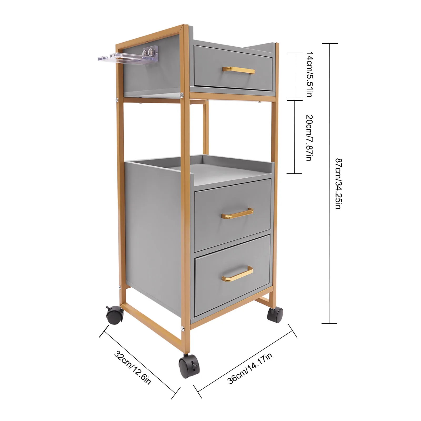 With its attractive appearance, large capacity, and sturdy construction, this hair salon storage cart is the ideal storage solution for your barber shop. Its 3 drawers and two open tiers are ample enough to store daily barber tools, and the four casters make this product easy to move around, making your work environment tidy and increasing your work efficiency.