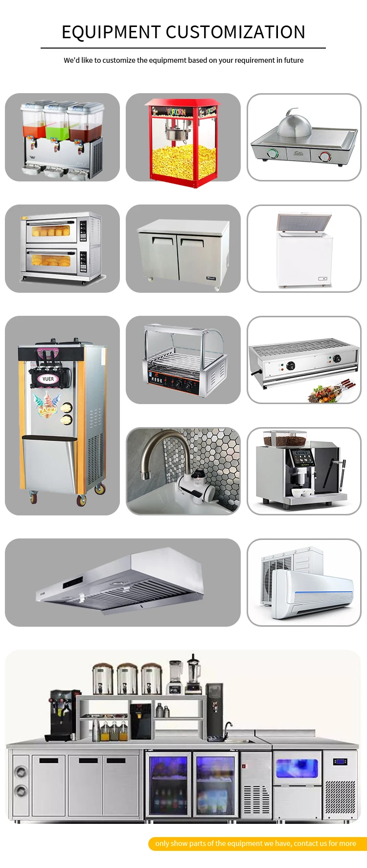 5. All kitchen equipments can be customized based on your real requirements. 6. Lifetime: 30-40 years.