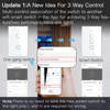 1.New idea for 2/3 Way circuit (two switches control one light)that is explained as multi-control association of this switch to other WiFi smart switches in App;capacitive touch control, turn on/off your light with a single touch and scratch resistance glass panel gives the best look to blend with any wall design.(Note:You can multi-control associate of this switch to multiple different switches,but several gangs on one switch is not available,only one gang on one switch can be associated for multi-control.)