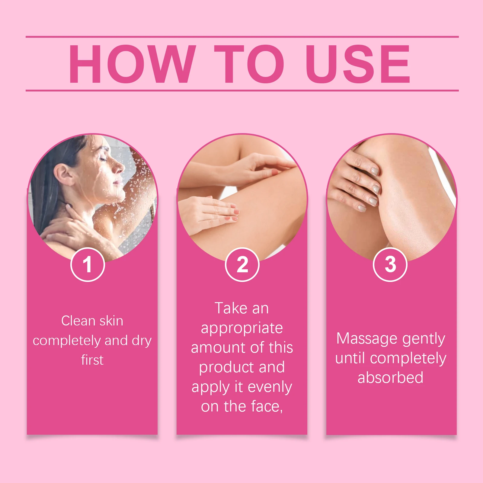Take an appropriate amount of the product and apply it evenly on the face, neck, arms, and other desired parts of the body.
