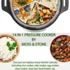 - 9 Appliances In 1: moss & stone replaces your 9 common kitchen appliances with 1 that will cook in less than half the time. pressure cooker, slow cooker, sauté pan, rice cooker, yogurt maker, cake maker, egg cooker, seamer, and food warmer. All in one electric appliance.