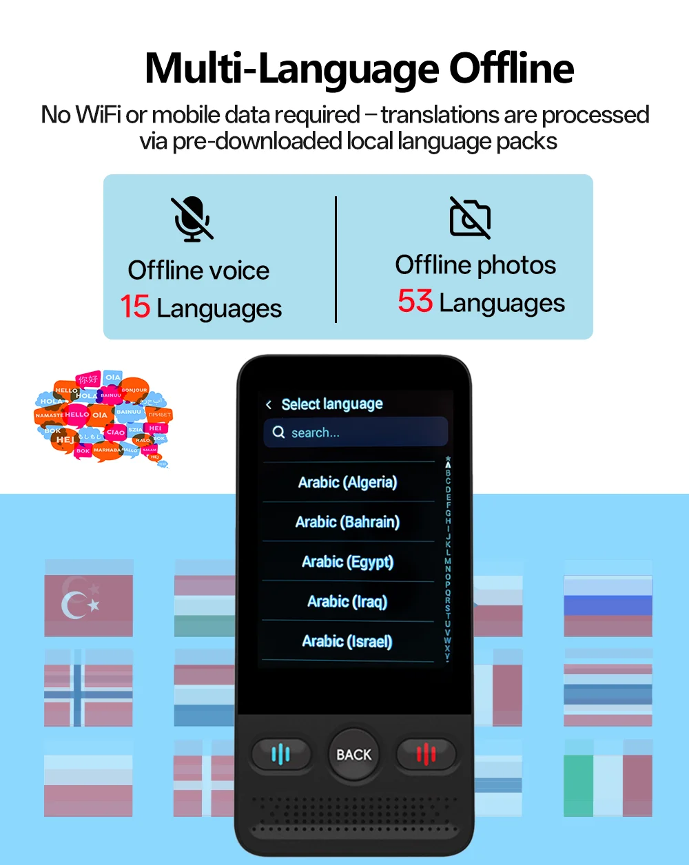 📴 Accurate Offline Translation: Achieves precise mutual translation for 15 mainstream languages (including Chinese, English, Japanese, Korean, French, German, Spanish, Russian, etc.) without internet, meeting needs in offline scenarios like business trips and travel.