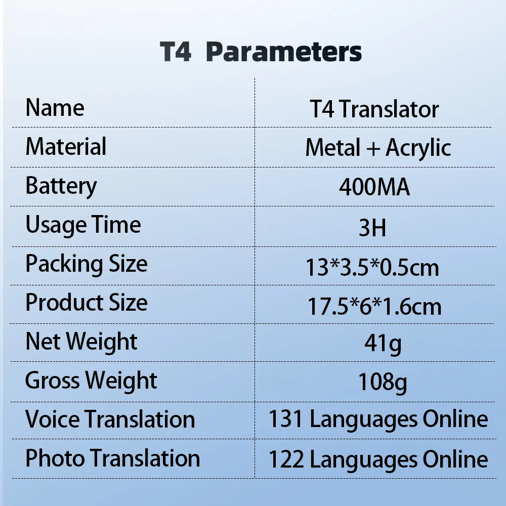 8. Long standby: Battery capacity of 400mAh, standby time of up to 48 hours, continuous translation for 4 hours, charging time of 2 hours.(Measured Time)