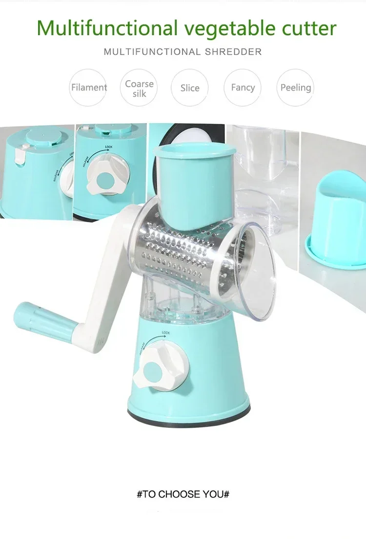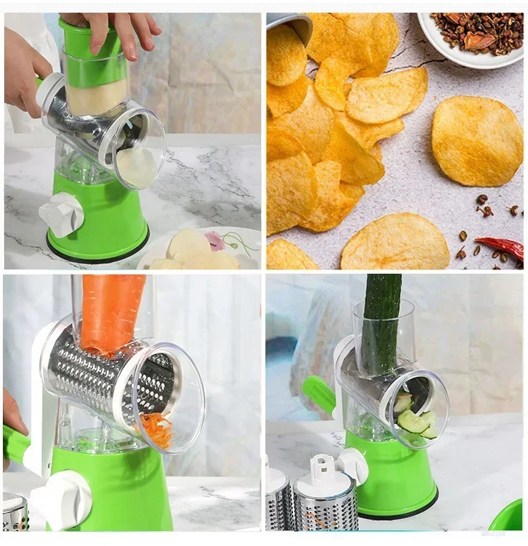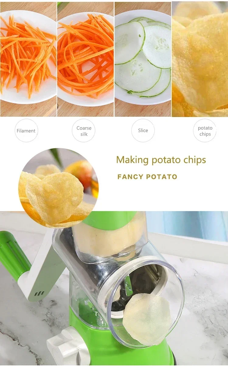 Hand-operated Multi-function Drum Vegetable Chopper Potato Slice Chopper Pressed Vegetable Grinder Peeled Garlic Chopper