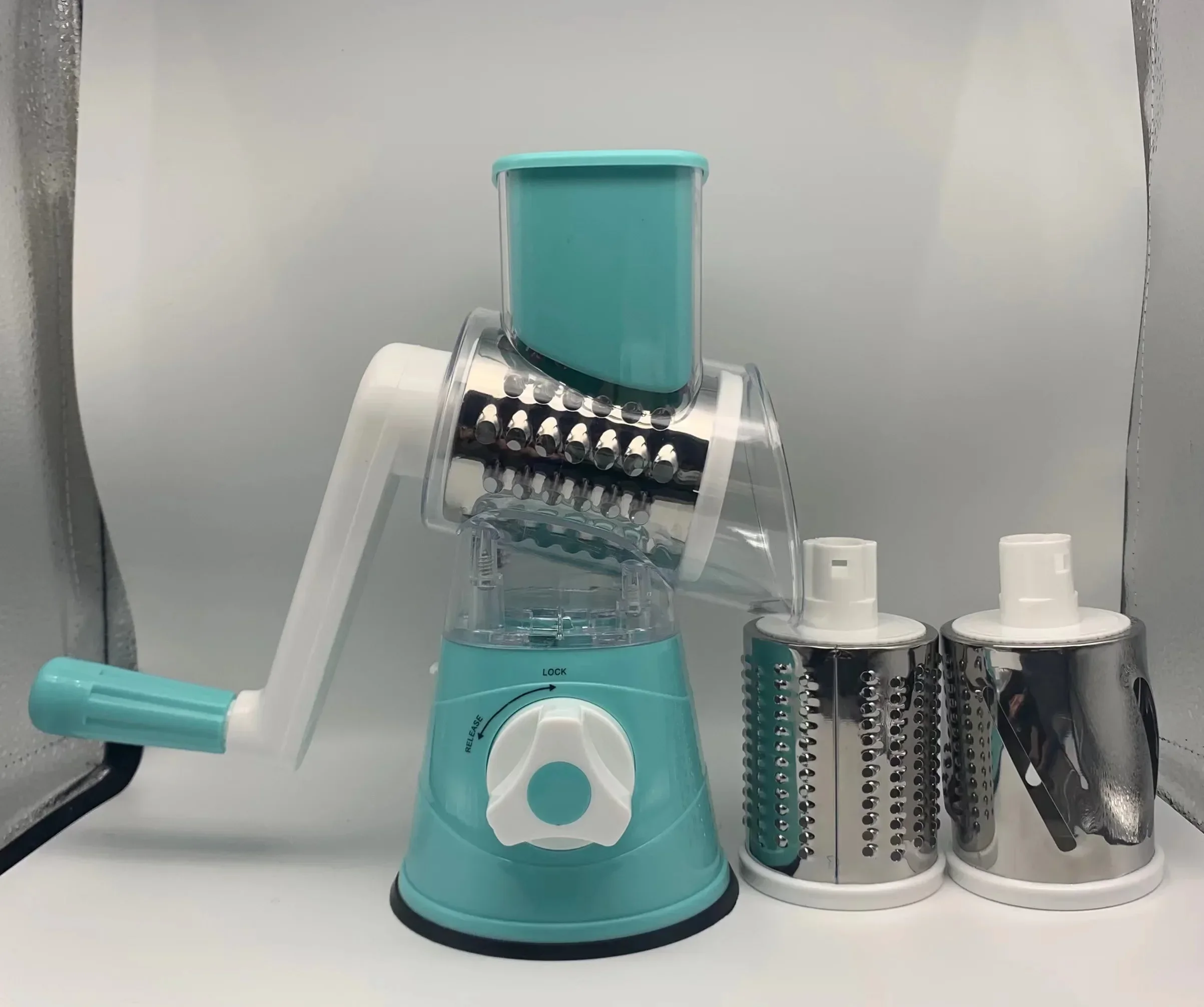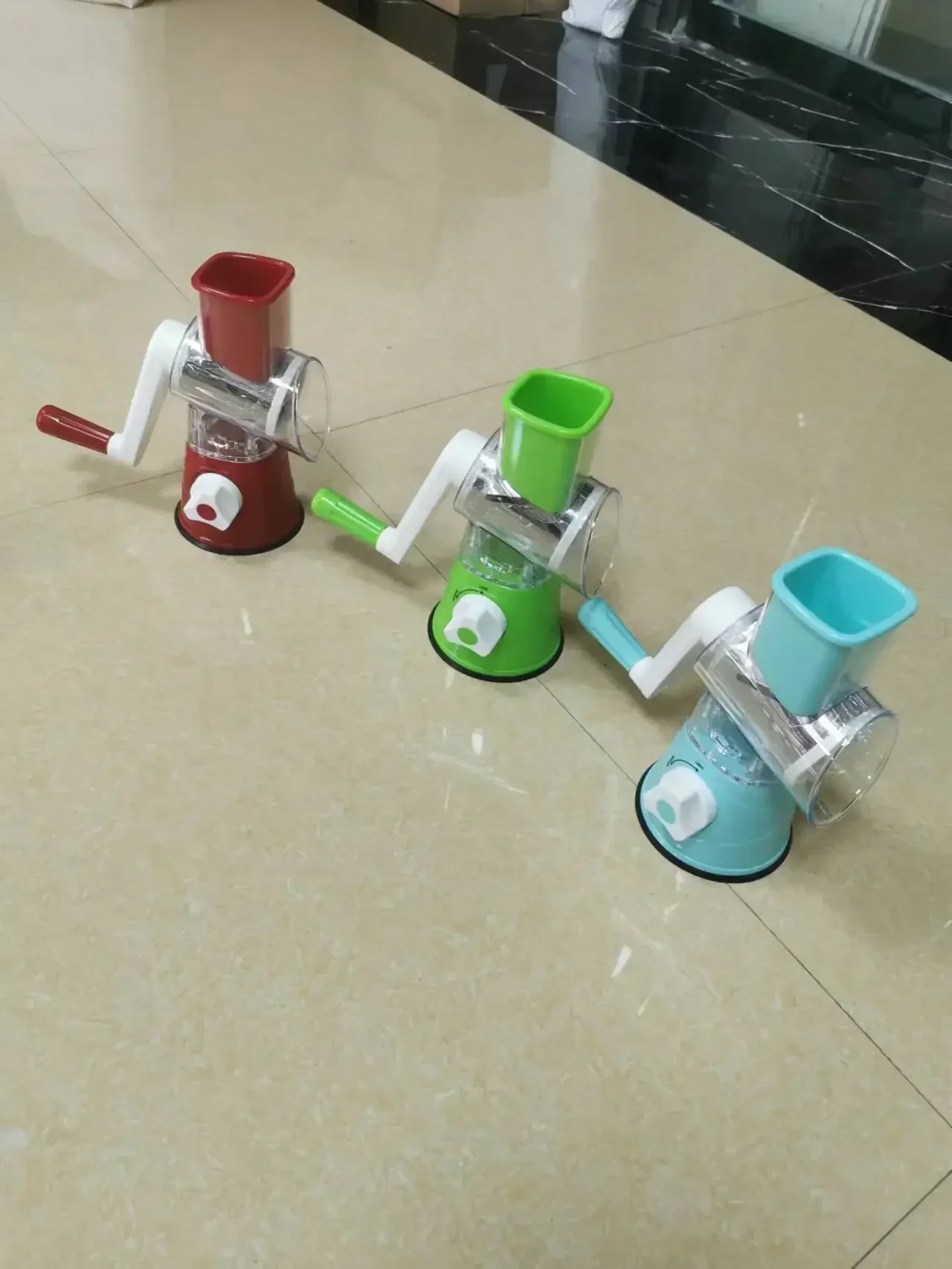 Anti-skid design. You can cut vegetables by turning the handle. After use, just rinse it with a mobile faucet.